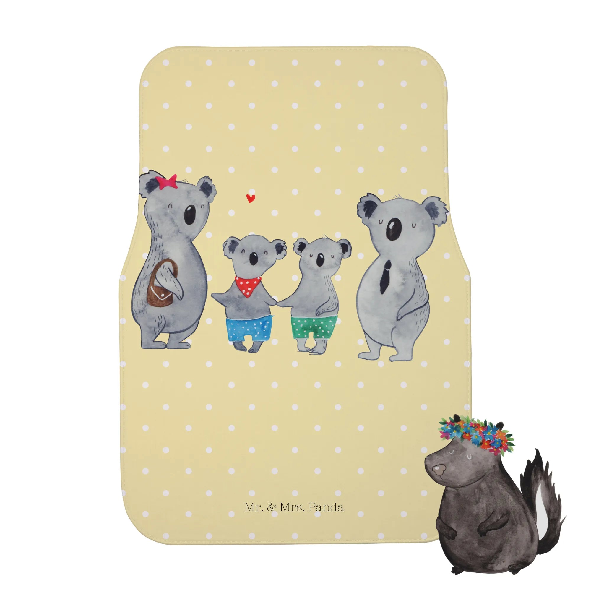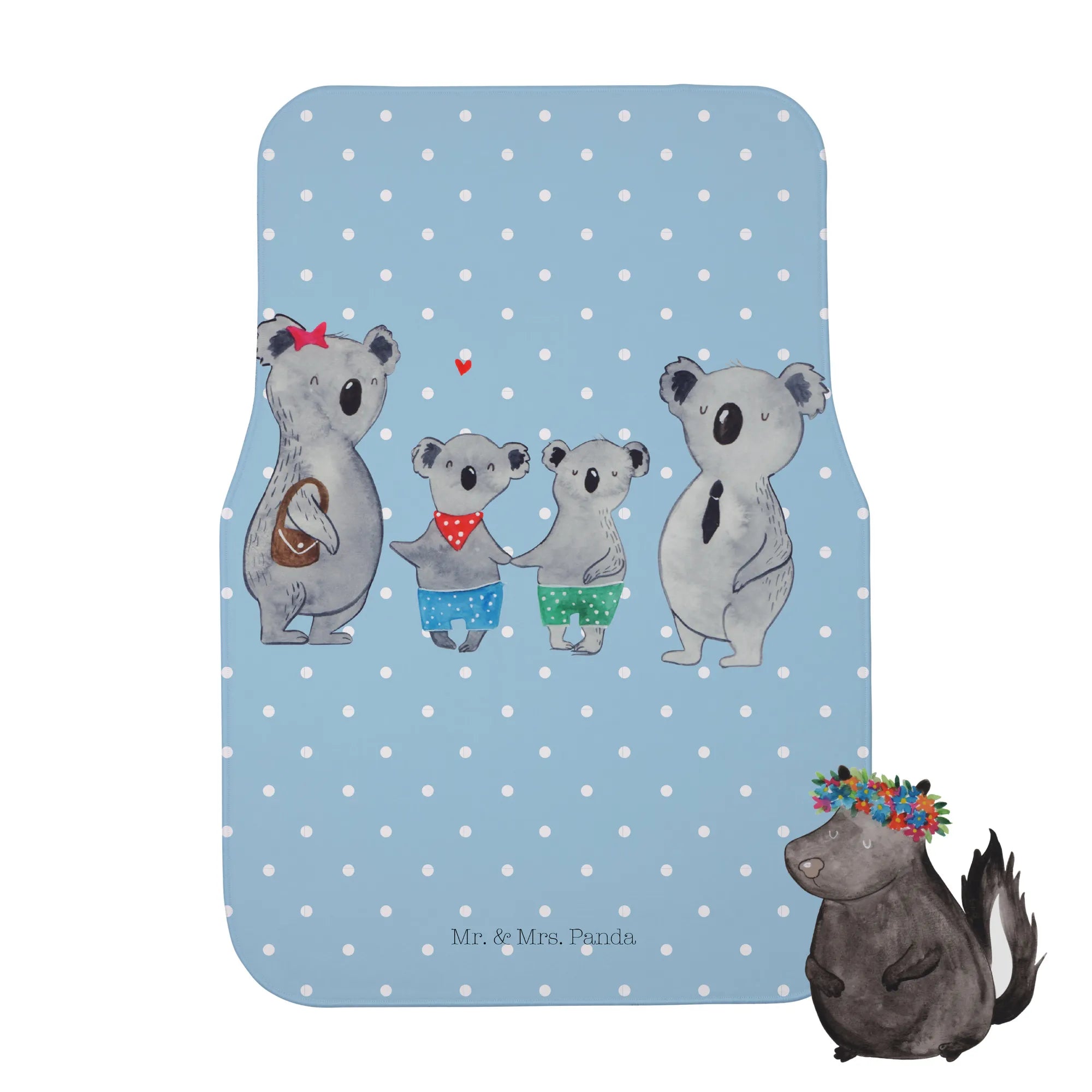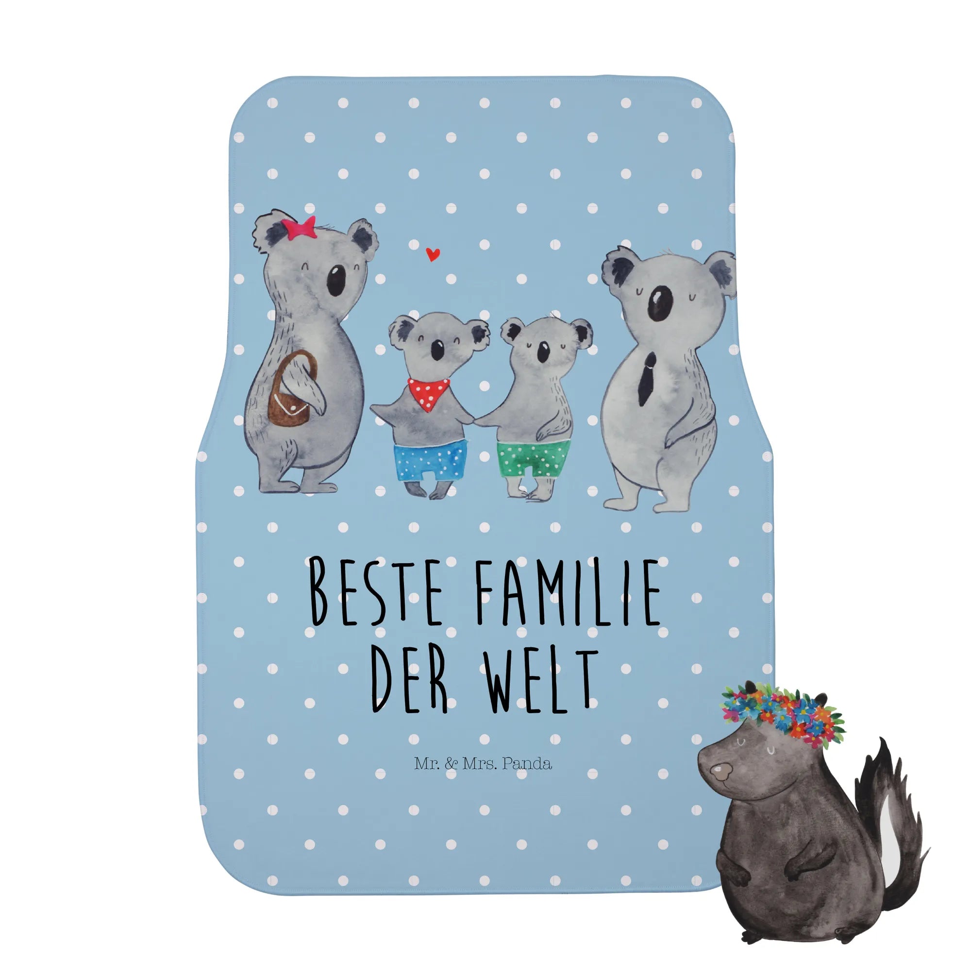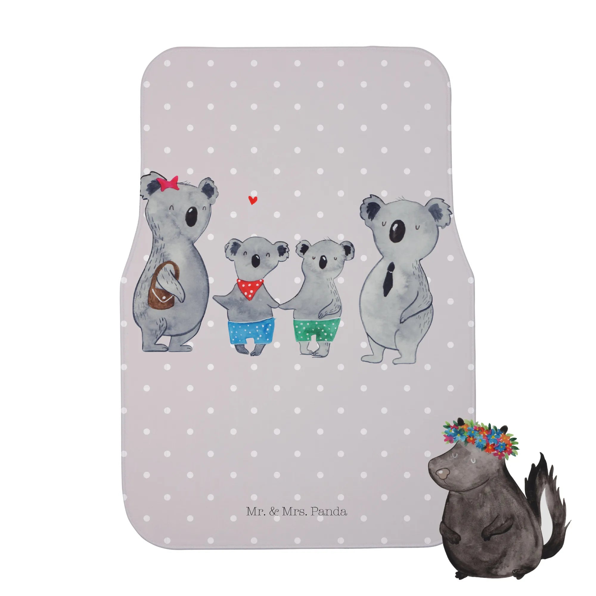 Die Fahrer Autofußmatte "Koala Familie zwei" aus der bezaubernden Familien Kollektion von Mr. & Mrs. Panda ist das perfekte Geschenk für alle, die ihren Wagen nicht nur bei Fahrten, sondern auch bei Zuhause liebevoll gestalten möchten. Diese Fußmatte ist mehr als nur ein praktisches Accessoire – sie ist ein wahrer Hingucker! Mit einem entzückenden Motiv, das eine liebevolle Koalafamilie zeigt, bringt sie Freude in jedes Autofahrzeug. Der größte Koala, der wie eine Mutterfigur wirkt, ist mit einem roten Sternchen im Haar dargestellt. Neben ihr steht ein fröhlicher Koala in einem roten Halstuch, während die beiden kleineren Koalas, die die Kinder repräsentieren, in ihren bunten Shorts strahlen. Der Vater-Koala, elegant im Anzug mit Krawatte, rundet das fröhliche Bild ab.