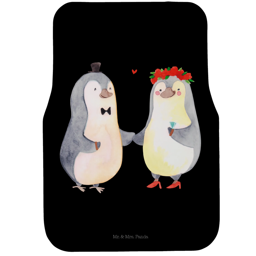 Die Fahrer Autofußmatte "Pinguin Heirat" aus der besonderen Kollektion Liebe von Mr. & Mrs. Panda ist das perfekte Geschenk für alle Verliebten und frisch Verheirateten.