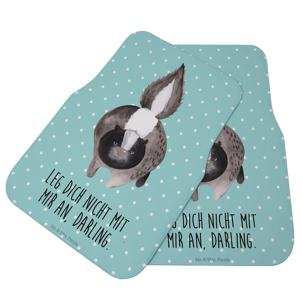 Die Fahrer Autofußmatte mit dem Motiv "Stinktier Angriff" aus der süßen Stinktier-Kollektion von Mr. & Mrs. Panda ist das perfekte Geschenk für alle Autofahrer und Freunde von Originalität. Diese strapazierfähige Matte schützt nicht nur den Fußraum Deines Fahrzeugs vor Schmutz und Nässe, sondern bringt auch ein fröhliches und witziges Element in jeden Wagen.