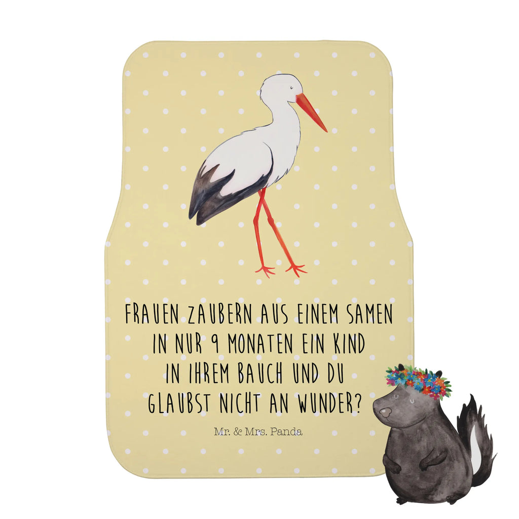 Die Fahrer Autofußmatte mit dem süßen Storch-Motiv aus der kleinen Welt ist nicht nur ein Trendsetter für dein Auto, sondern auch der perfekte Begleiter für jede frischgebackene Mama oder Schwangere!