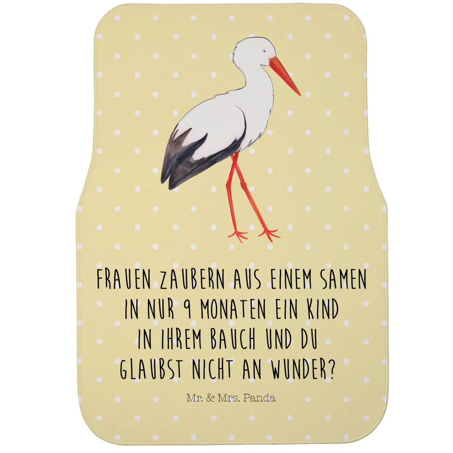 Fahrer Autofußmatte Storch - mit Spruch - Gelb Pastell