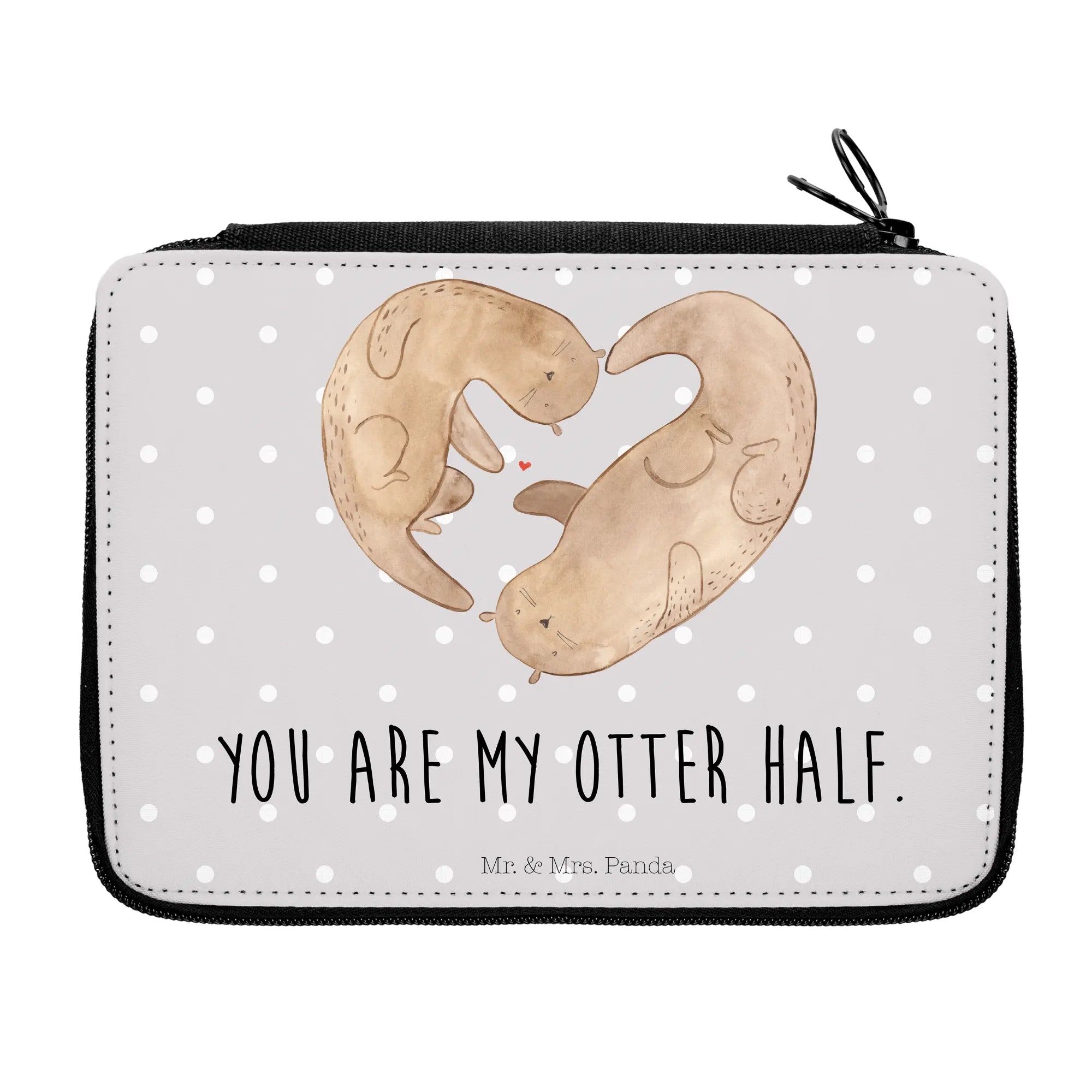 Der einzigartig handgezeichnete Otter strahlt Wärme aus und vermittelt mit dem Slogan "You are my otter half" eine süße Liebesbotschaft. Diese Federmappe ist aus hochwertigem Material gefertigt, leicht zu reinigen und bietet Platz für all die wichtigen Utensilien, die man im Schulalltag so braucht.