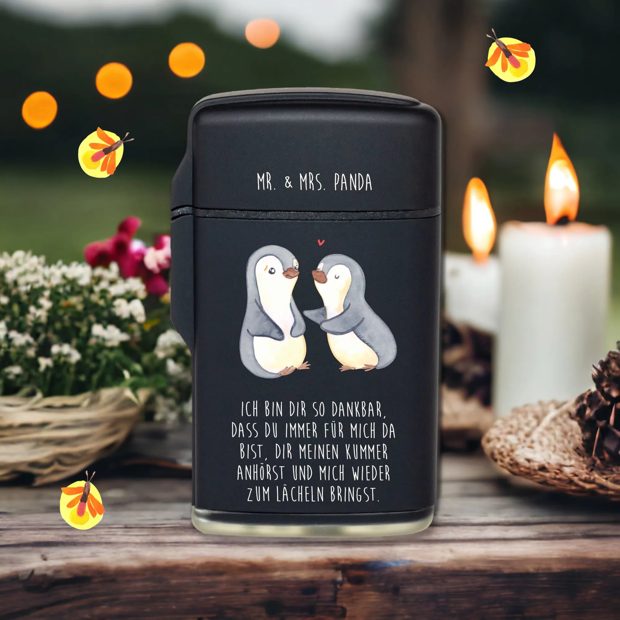 Das Feuerzeug mit dem Motiv "Pinguine trösten" aus der Liebe Kollektion von Mr. & Mrs. Panda ist das perfekte Geschenk für all jene, die ihren Liebsten eine kleine Freude bereiten möchten. Mit seinem charmanten Design bringt es nicht nur Licht ins Dunkel, sondern auch Licht ins Herz!