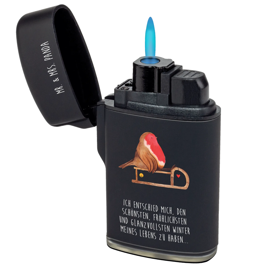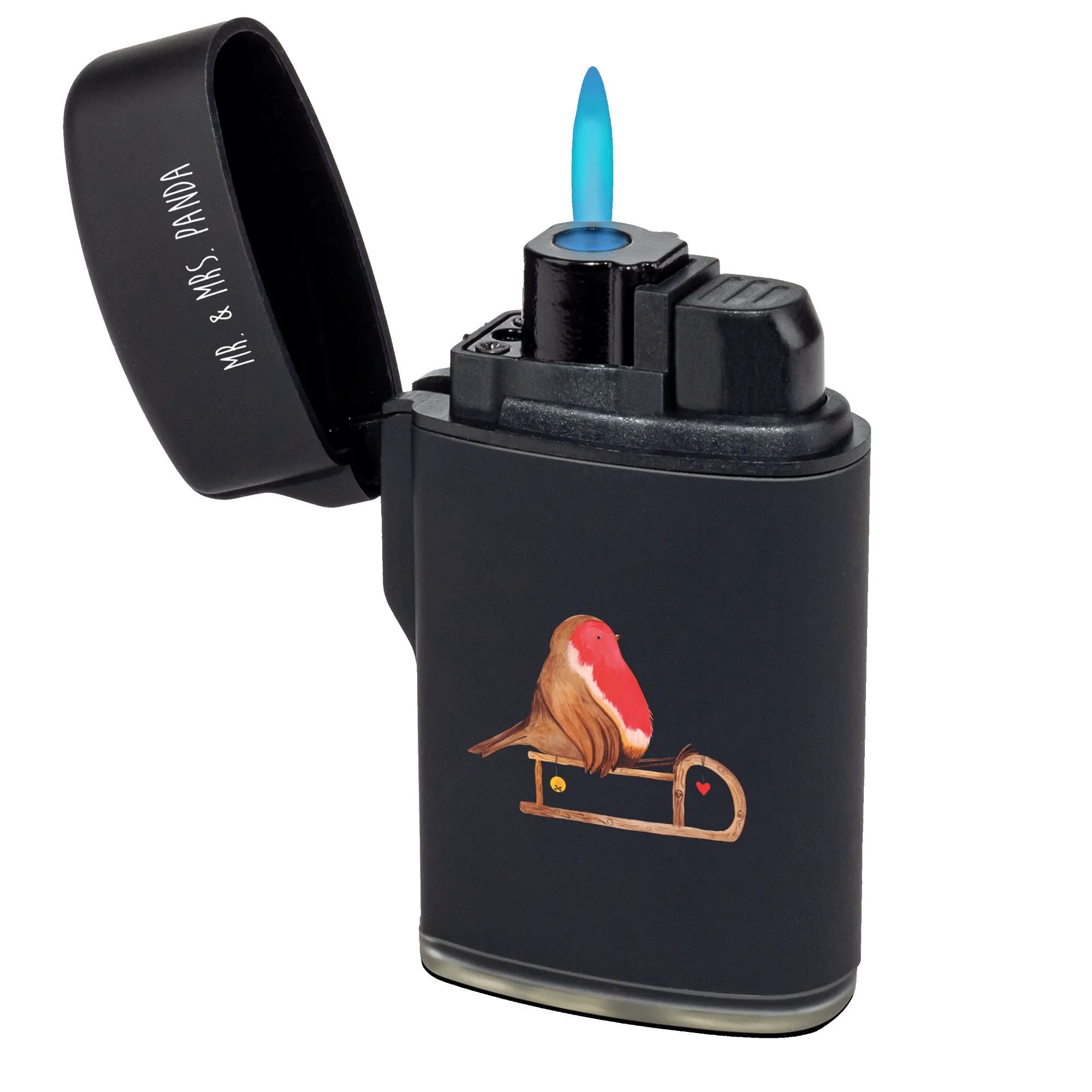 Feuerzeug Rotkehlchen Schlitten - mit Spruch
