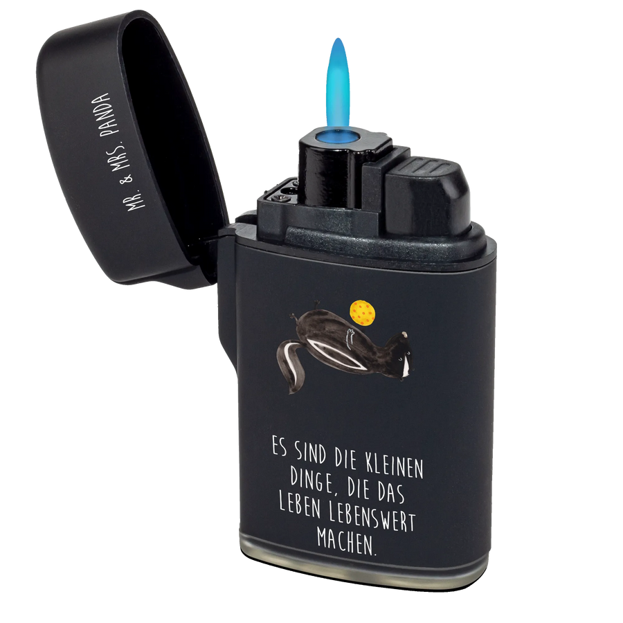 Das Feuerzeug mit dem süßen Stinktier-Motiv ist das perfekte Geschenk für alle Tierliebhaber und Freunde des charmanten Designs. Hochwertig bedruckt mit dem fröhlichen Stinktier, das begeistert mit seinem Ball durch die Natur springt, bringt dieses Feuerzeug Freude in jedes Zuhause. Die Stinktier - Kollektion von Mr. & Mrs. Panda erinnert an die kleinen Dinge im Leben, die es lebenswert machen. Es sind liebevolle Designs entstanden, die auch den traurigsten Moment erhellen können.
