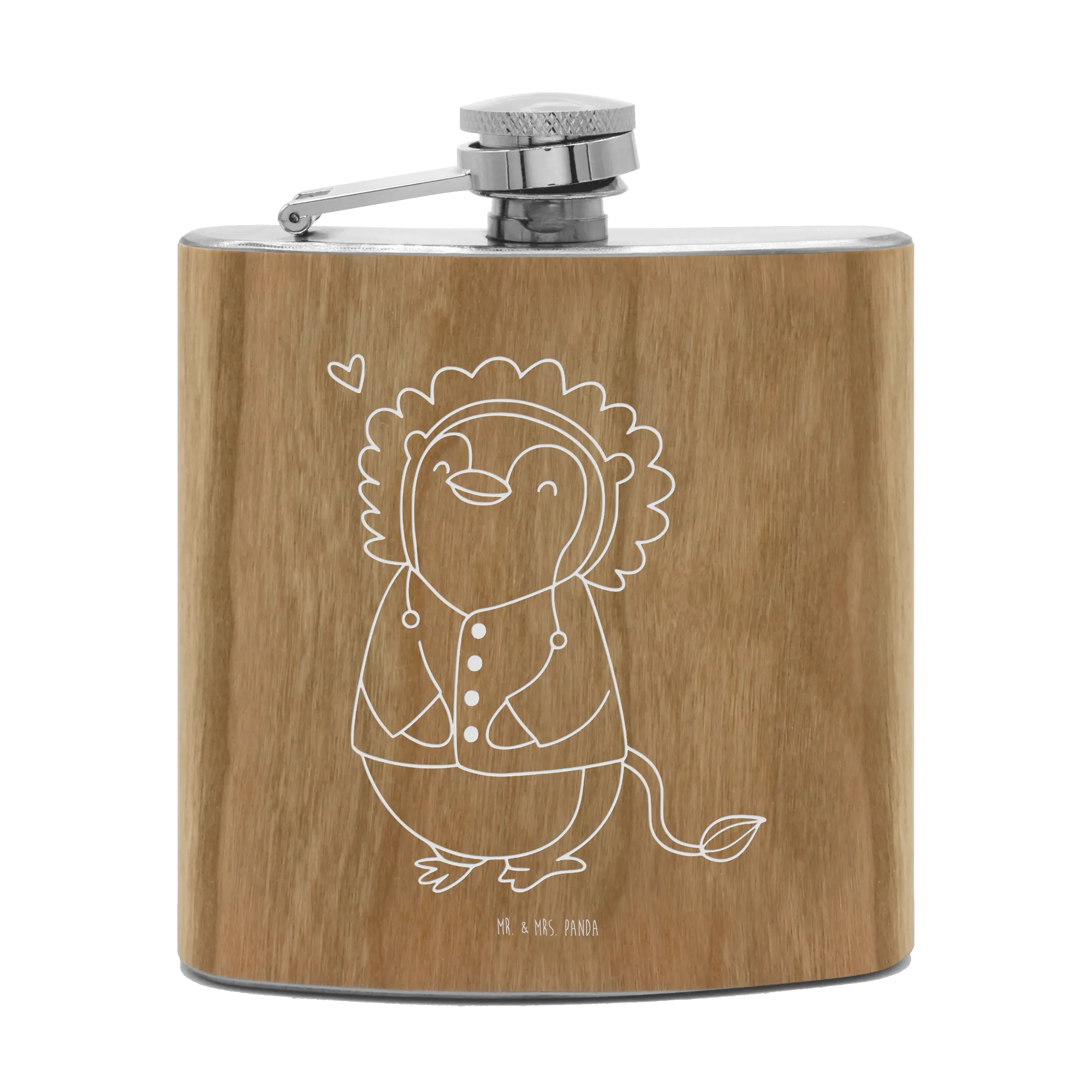 Was gibt es besseres, als einen kleinen Flachmann von Mr. & Mrs. Panda in deiner Tasche zu haben? Mit den Maßen von 109 mm x 93 mm x 22 mm und einem Füllvolumen von 150 ml umfasst er die perfekte Menge, um mit Freunden unterwegs anzustoßen! Hergestellt aus solidem Edelstahl und ummantelt mit stilvollem Holzlaminat, bietet dieser Flachmann eine edle Optik und ein angenehmes Tragegefühl. Die liebevolle Gravur mit spritzigen Sprüchen und niedlichen Motiven sorgt für gute Laune bei jedem Fest. Ob beim Junggesellenabschied oder beim Wandern, dieser Flachmann ist immer ein praktischer Begleiter. Mit dem sicheren Schraubverschluss bleibt alles dicht und er ist leicht zu reinigen - einfach mit heißem Wasser! Bitte beachte, dass er nicht spülmaschinenfest ist.