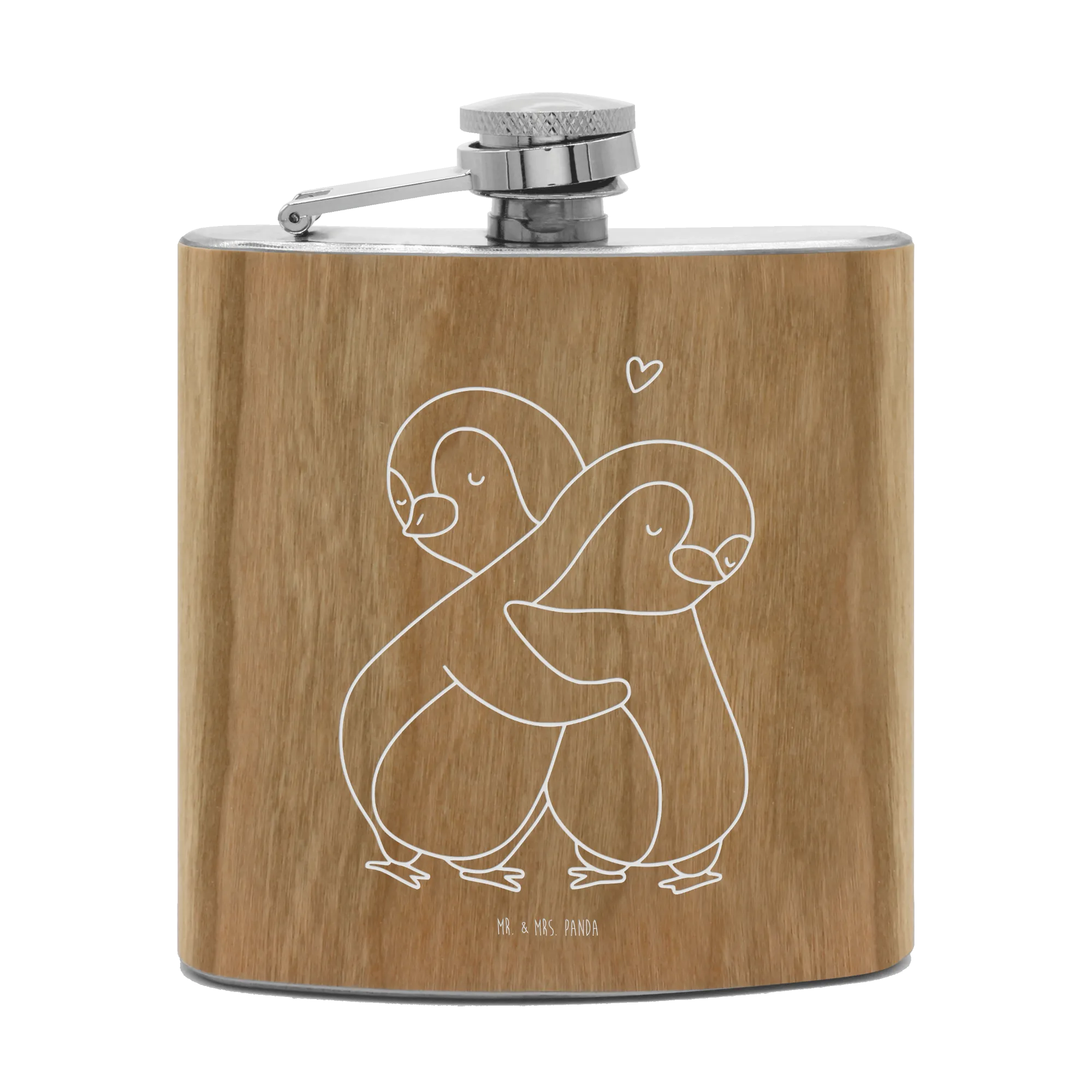 Genieße deine Lieblingsgetränke stilvoll mit dem Flachmann von Mr. & Mrs. Panda. Mit den perfekten Abmessungen von 109 mm x 93 mm x 22 mm und einem Füllvolumen von 150 ml ist dieser Flachmann nicht nur praktisch, sondern auch ein echter Blickfang. Der Edelstahl, umhüllt mit Holzlaminat, gibt dem Flachmann eine besonders edle Note. Die humorvolle Gravur mit Motiven, die Freude bereiten, macht ihn zum idealen Begleiter für Junggesellenabschiede, Wandertouren oder entspannte Ausflüge mit Freunden. Super leicht und ideal zu transportieren, passt er in jede Tasche. Der Flachmann liegt gut in der Hand und ist mit einem sicheren Schraubverschluss ausgestattet, der ein Auslaufen verhindert. Achte darauf, ihn nur mit heißem Wasser zu reinigen, denn er ist nicht spülmaschinenfest!