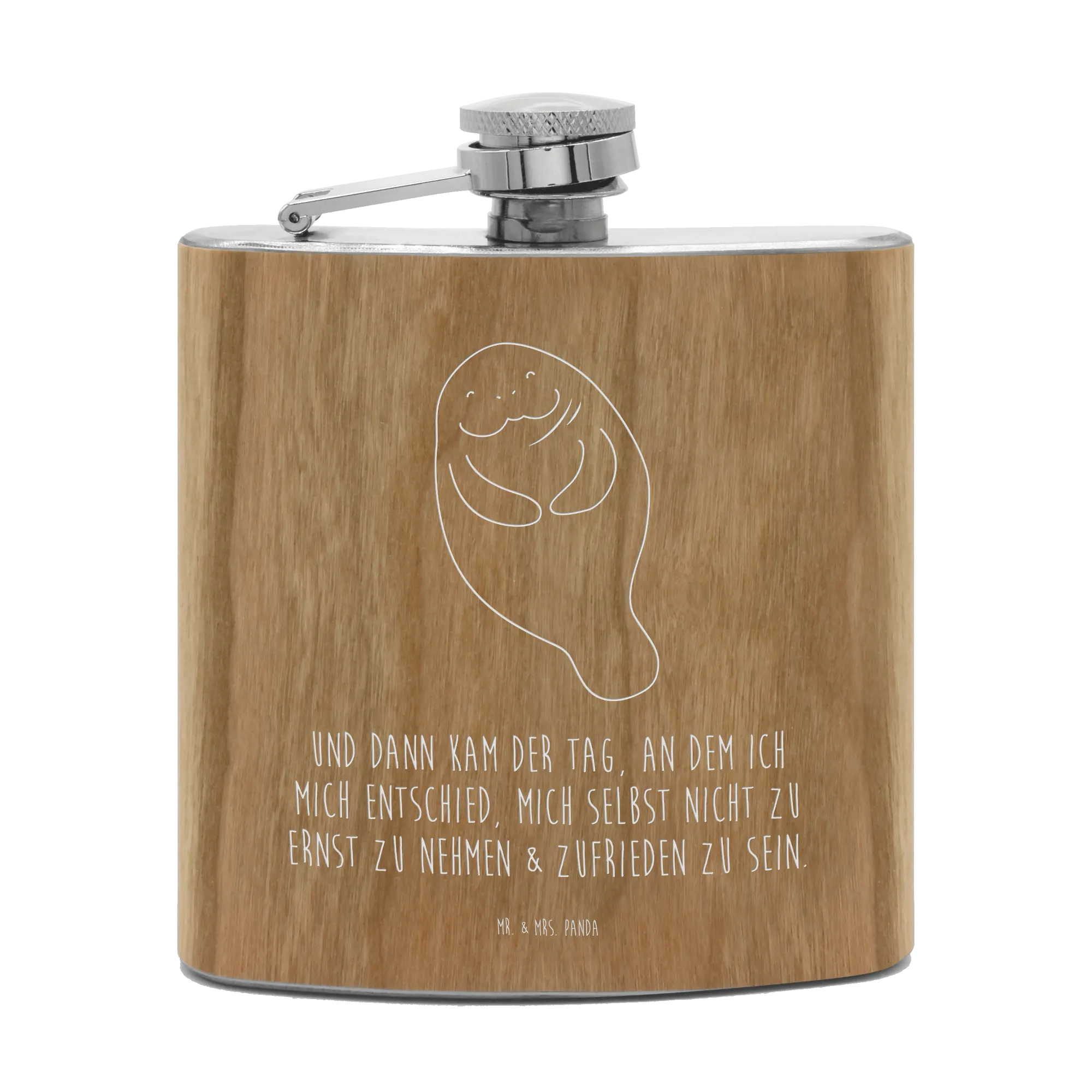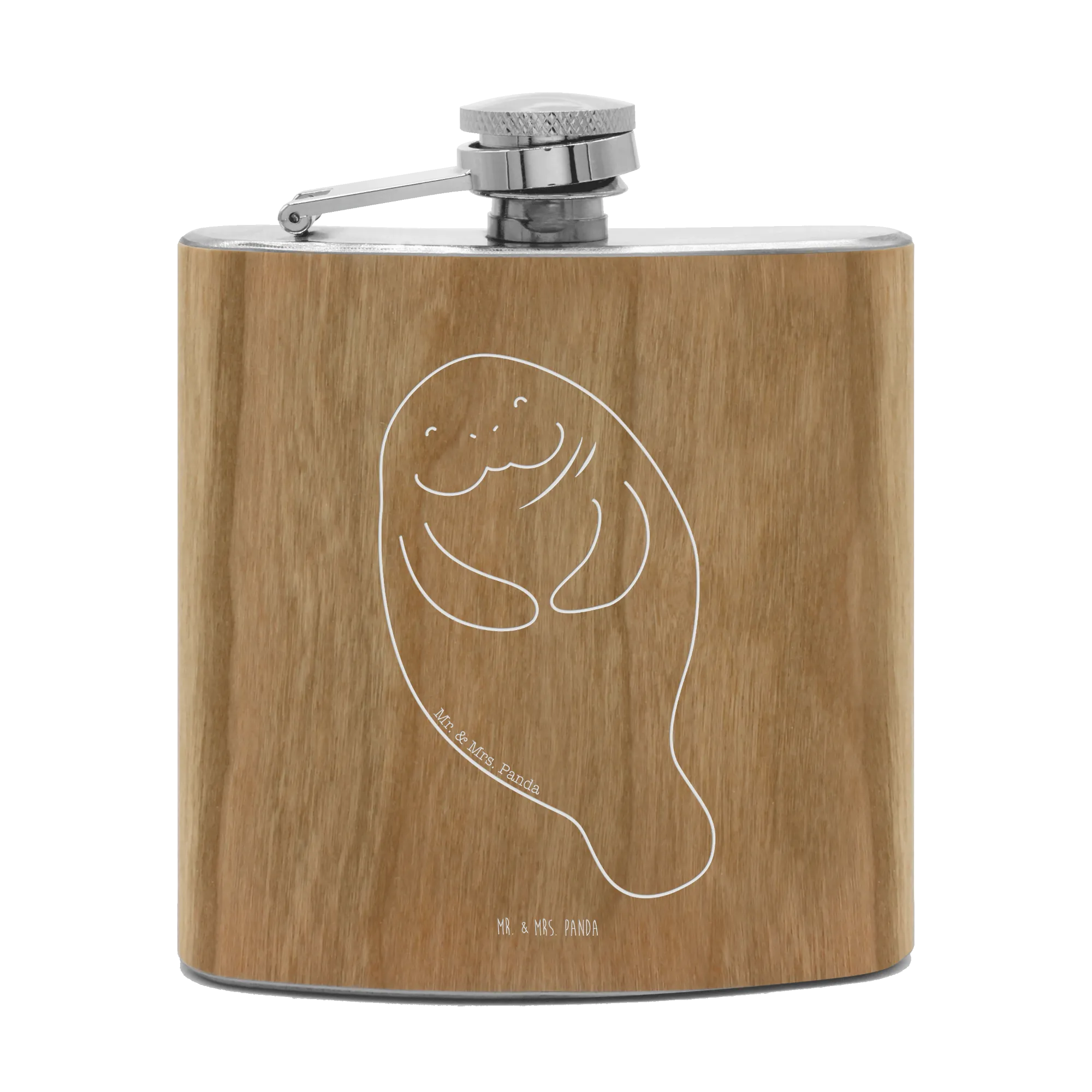 Erlebe mit dem Flachmann Seekuh happy von Mr. & Mrs. Panda die Faszination des Meeres – ein perfektes Geschenk für alle Meerestiere-Fans und jeden, der die positiven Vibes der Seekühe liebt. Egal ob für dich selbst oder zum Verschenken, dieser Flachmann ist eine stilvolle und praktische Wahl, die Freude bereitet.