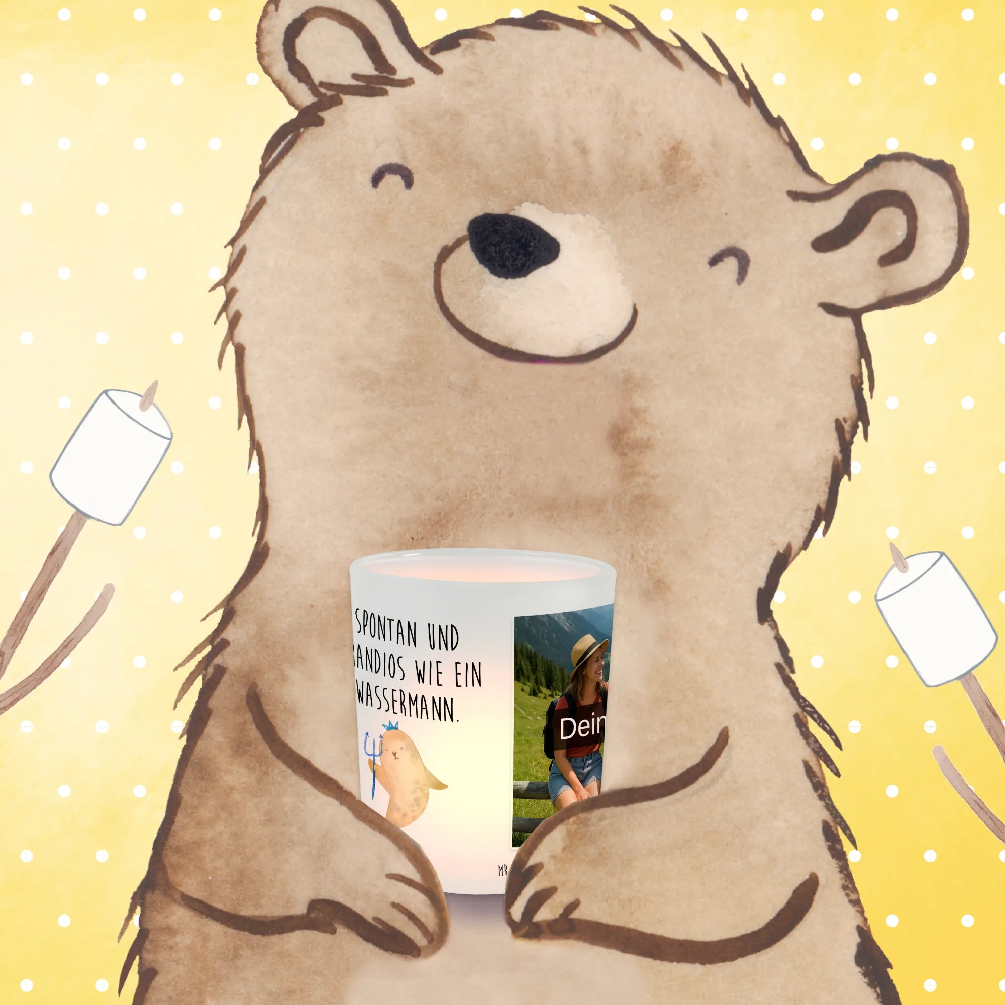 Verleihe deinem Zuhause eine persönliche Note mit unserem personalisierten Foto Windlicht von Mr. & Mrs. Panda! Dieses stilvolle Windlicht ist aus satiniertem Glas hergestellt und hat eine Größe von 70 mm x 80 mm. Du kannst es individuell mit einem Foto deiner Wahl gestalten. Achte darauf, dass dein Bild in hoher Auflösung vorliegt, damit die Details perfekt zur Geltung kommen. Überprüfe vor dem Hochladen den Bildausschnitt, damit nichts Wichtiges verloren geht. Das Windlicht ist perfekt für Teelichter und hält sie zuverlässig vor Wind geschützt. Es schafft eine warme Atmosphäre und ist ideal für romantische Abende oder besondere Anlässe. Pflege dein Windlicht mit sanfter Handwäsche, um seine Schönheit zu bewahren. Mach dein Zuhause noch schöner – mit einem einzigartigen Lichtspiel!