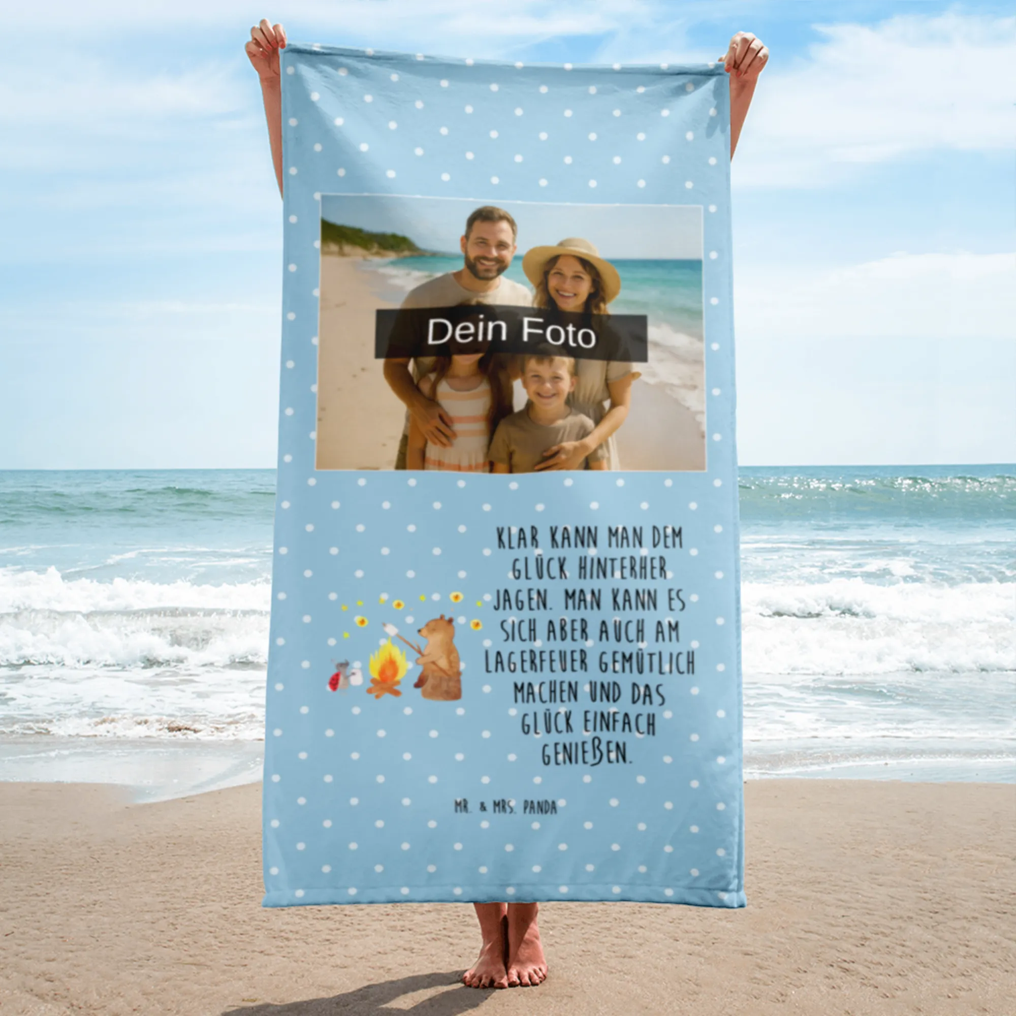 Stell dir vor, du liegst am Strand, die Sonne kitzelt deine Nase, und neben dir liegt ein ganz besonderes Stück Geborgenheit. Unser Foto XL Handtuch mit dem herzlichen Bär & Marienkäfer Lagerfeuer Motiv von Mr. & Mrs. Panda ist nicht einfach nur ein Handtuch – es ist eine Einladung, das Leben in vollen Zügen zu genießen. 🐻✨