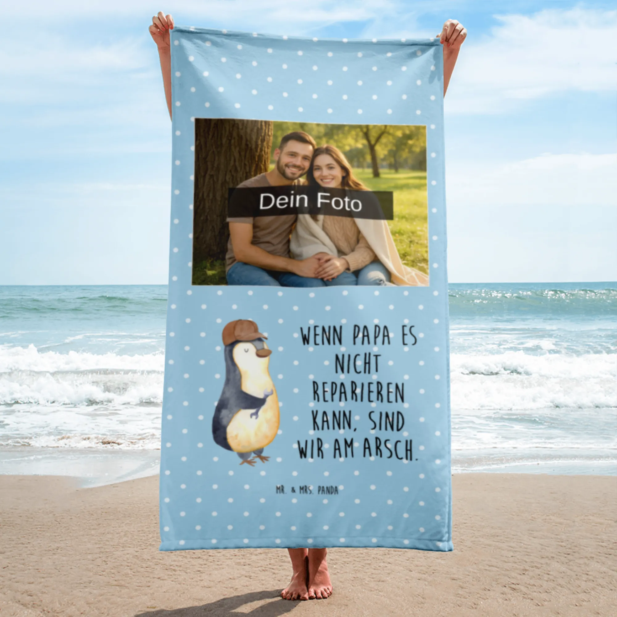 Foto XL Handtuch Wenn Papa es nicht reparieren kann, sind wir am Arsch - Blau Pastell