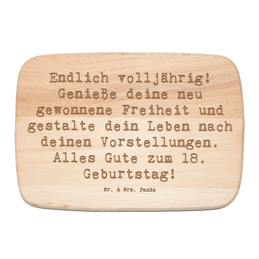 Das Frühstücksbrett von Mr. & Mrs. Panda ist das perfekte Geschenk zum 18. Geburtstag! Dieses liebevoll gestaltete Holzbrett mit dem Spruch „Endlich volljährig! Genieße deine neu gewonnene Freiheit und gestalte dein Leben nach deinen Vorstellungen. Alles Gute zum 18. Geburtstag!“ ist nicht nur eine wundervolle Überraschung, sondern auch ein praktischer Begleiter für jeden Morgen.