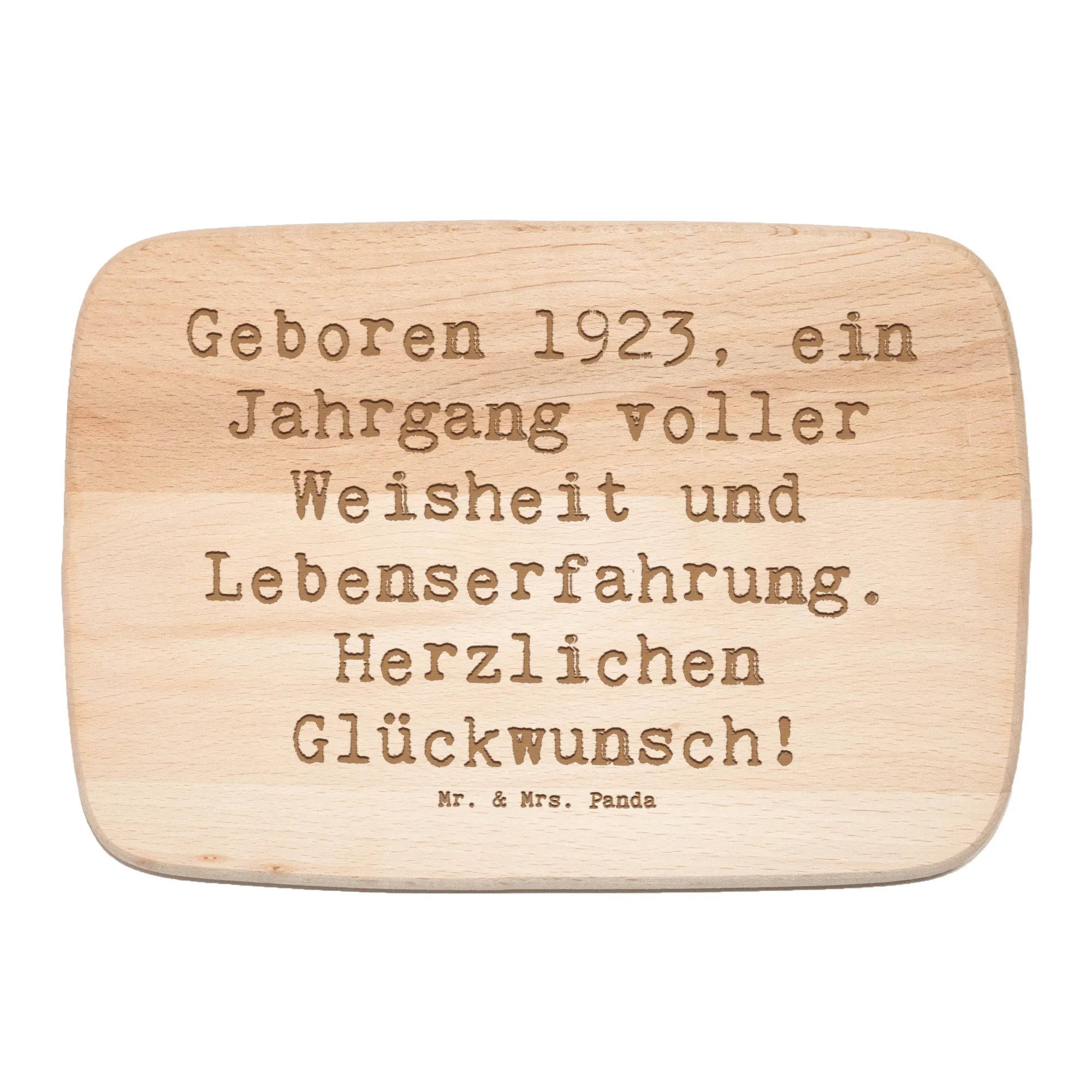 Das einzigartige Frühstücksbrett von Mr. & Mrs. Panda ist das perfekte Geschenk für alle, die 1923 geboren wurden! Mit dem liebevollen Slogan: "Geboren 1923, ein Jahrgang voller Weisheit und Lebenserfahrung. Herzlichen Glückwunsch!" ist es ein echtes Highlight in jeder Küche.