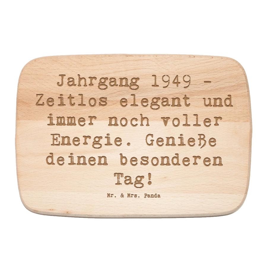 Das Frühstücksbrett „Jahrgang 1949 - Zeitlos elegant und immer noch voller Energie. Genieße deinen besonderen Tag!“ von Mr. & Mrs. Panda ist das perfekte Geschenk für jeden, der in diesem Jahr geboren wurde. Es vereint praktische Anwendung mit einem Hauch von Nostalgie und ist somit ideal für Geburtstagsfeiern, Jubiläen oder einfach nur als persönliche Überraschung.