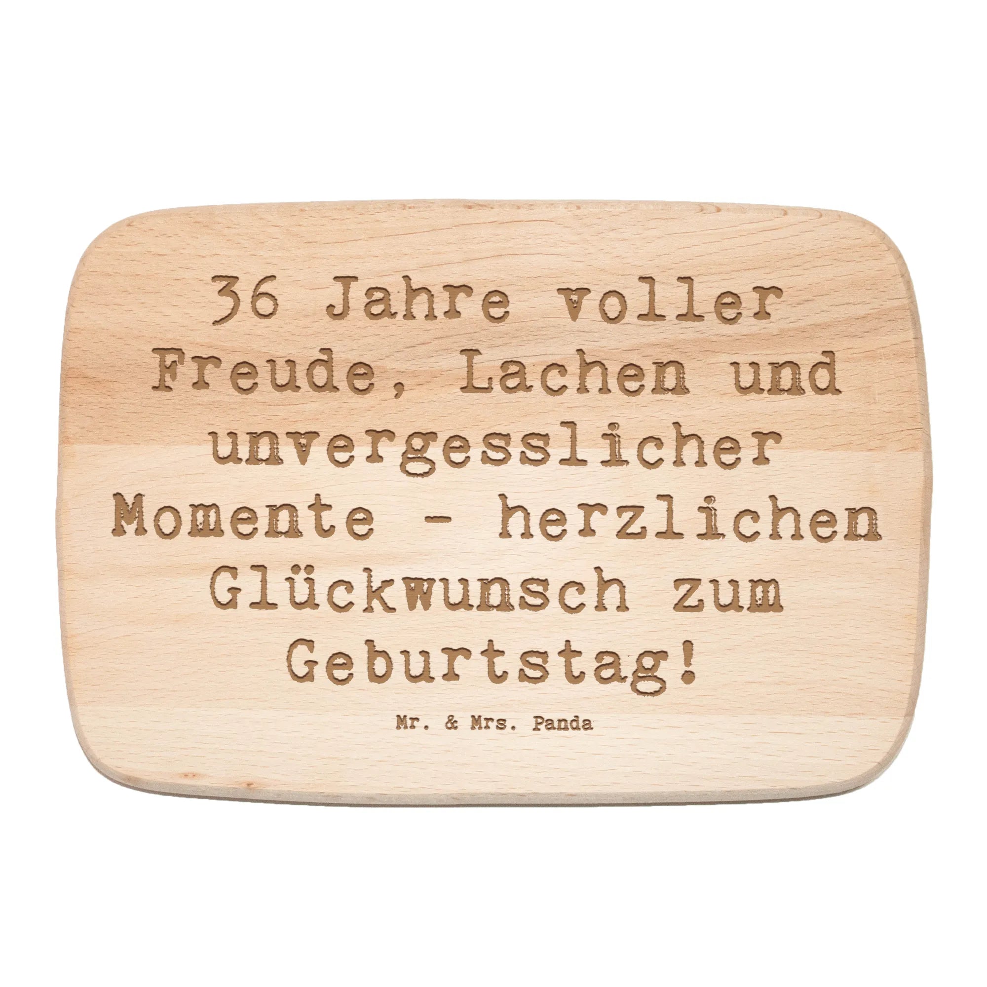 Mach deinen nächsten Geburtstag unvergesslich mit dem einzigartigen Frühstücksbrett von Mr. & Mrs. Panda! Mit dem liebevollen Slogan "36 Jahre voller Freude, Lachen und unvergesslicher Momente - herzlichen Glückwunsch zum Geburtstag!" ist dieses hochwertige Holzbrett das perfekte Geschenk für all jene, die ihren 36. Geburtstag gebührend feiern möchten.