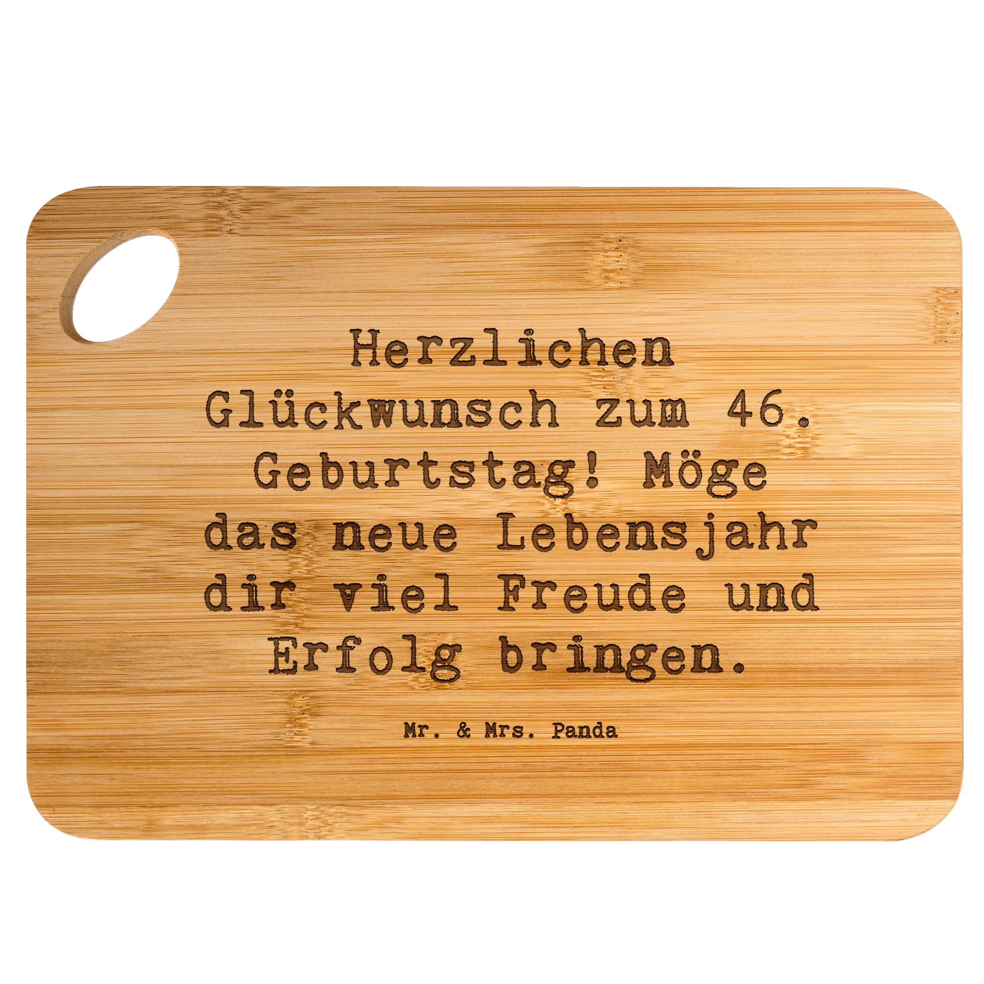 Herzlichen Glückwunsch zum 46. Geburtstag! Mit diesem liebevoll gestalteten Schneidebrett von Mr. & Mrs. Panda schenkst du ein praktisches, schönes Geschenk, das täglich an diesen besonderen Tag erinnert. Der Spruch „Herzlichen Glückwunsch zum 46. Geburtstag! Möge das neue Lebensjahr dir viel Freude und Erfolg bringen.“ ist dauerhaft graviert und verleiht dem Brett eine persönliche Note.