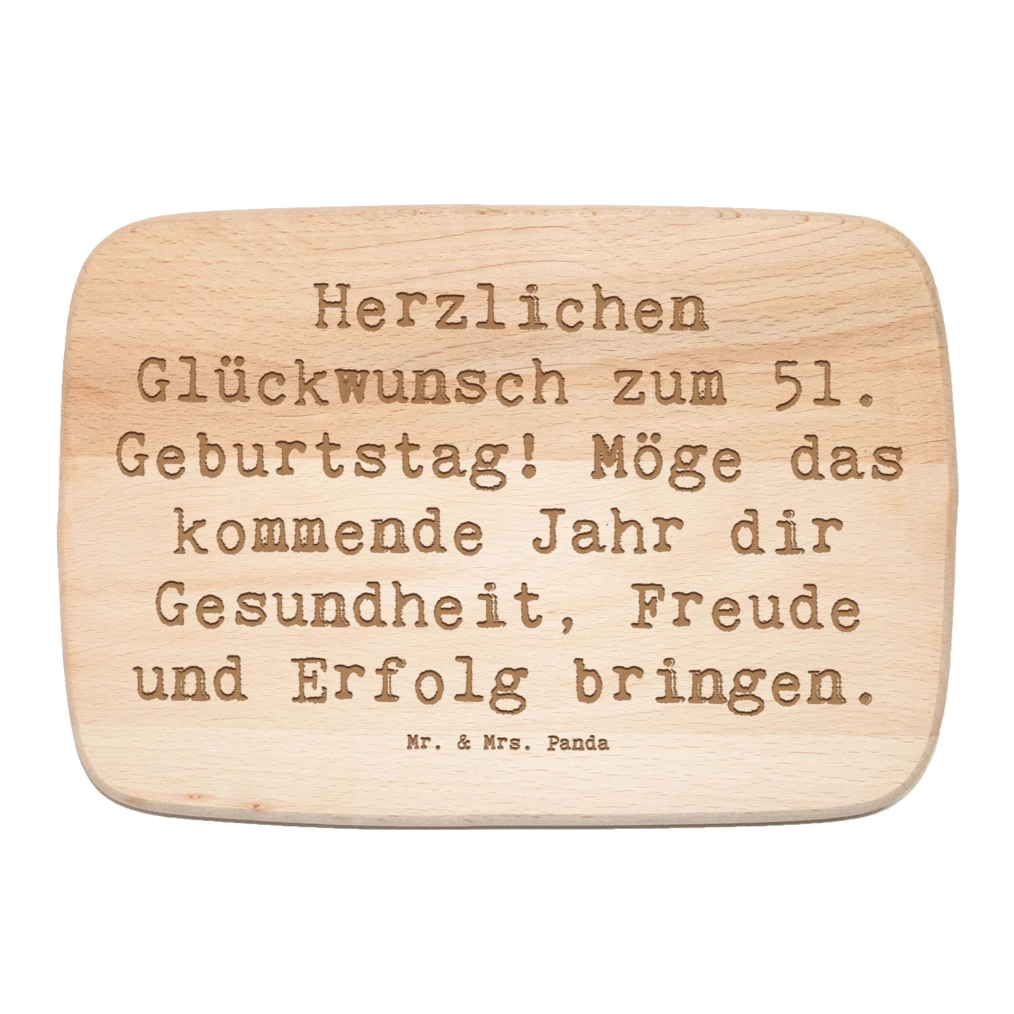 Auf dem Brett steht der liebevolle Spruch: 'Herzlichen Glückwunsch zum 51. Geburtstag! Möge das kommende Jahr dir Gesundheit, Freude und Erfolg bringen.' Dieser herzliche Wunsch wird durch die langlebige Lasergravur noch verstärkt und sorgt dafür, dass der Text für viele Jahre sichtbar bleibt.