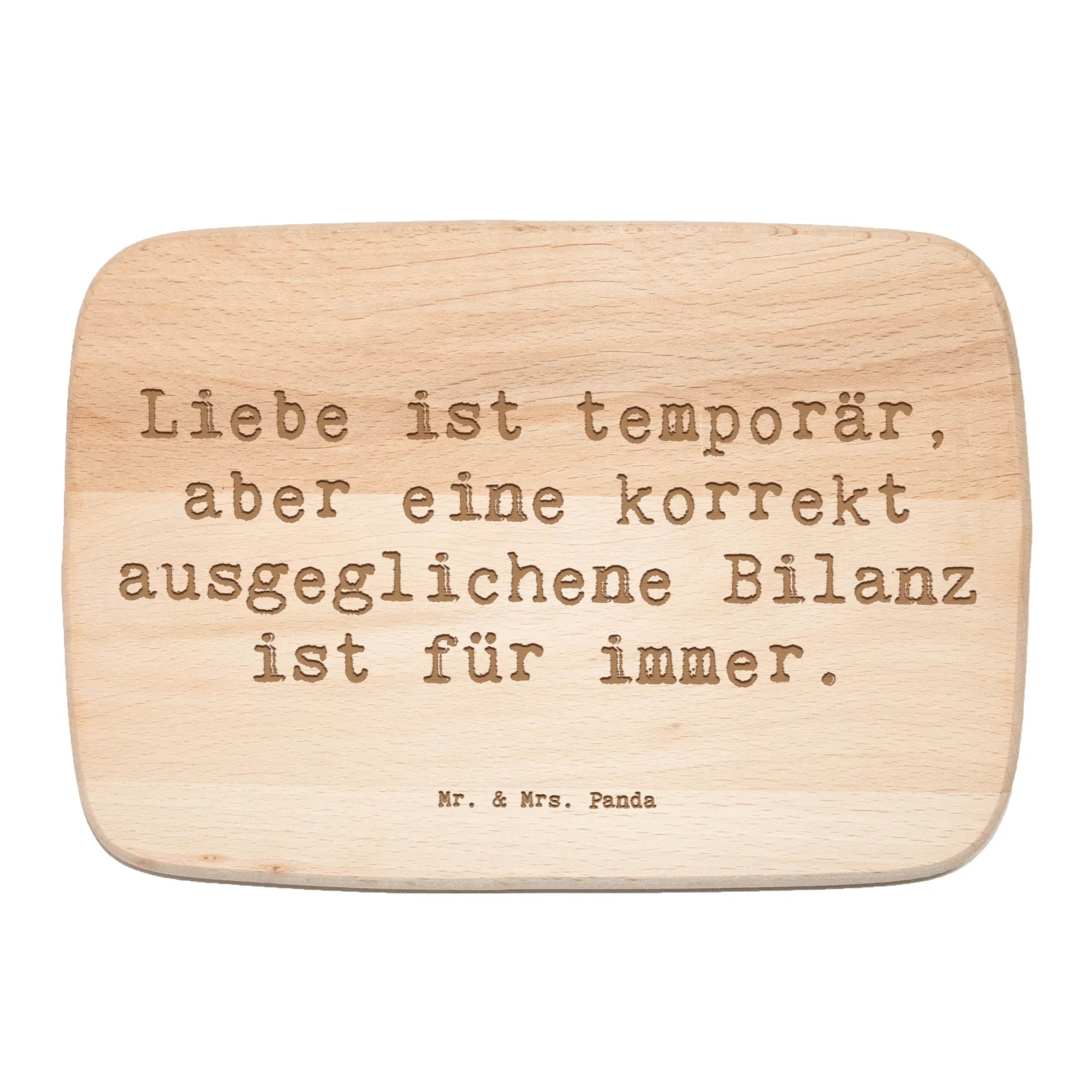 Das Frühstücksbrettchen "Buchhalter" von Mr. & Mrs. Panda ist das perfekte Geschenk für alle Zahlenliebhaber und Finanzprofis! Mit einem liebevoll gestalteten Motiv und dem Spruch "Liebe ist temporär, aber eine korrekt ausgeglichene Bilanz ist für immer", bringt dieses Holzbrett nicht nur ein Lächeln auf das Gesicht, sondern ist auch ein praktischer Begleiter in der Küche. Die robusten Maße von 130 mm x 230 mm x 130 mm machen es ideal für ein herzhaftes Frühstück oder die Präsentation von Snacks.