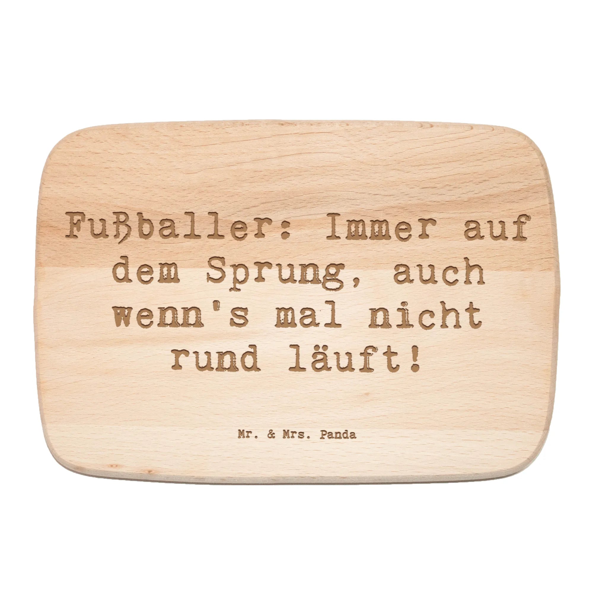 Das Frühstücksbrett Fußballer von Mr. & Mrs. Panda ist der perfekte Begleiter für alle kleinen und großen Fußballbegeisterten! Mit liebevoller Lasergravur zeigt es den motivierenden Spruch: "Fußballer: Immer auf dem Sprung, auch wenn's mal nicht rund läuft!" Dieses Frühstücksbrett ist nicht nur praktisch für das morgendliche Frühstück, sondern auch ein echter Hingucker in jeder Küche.