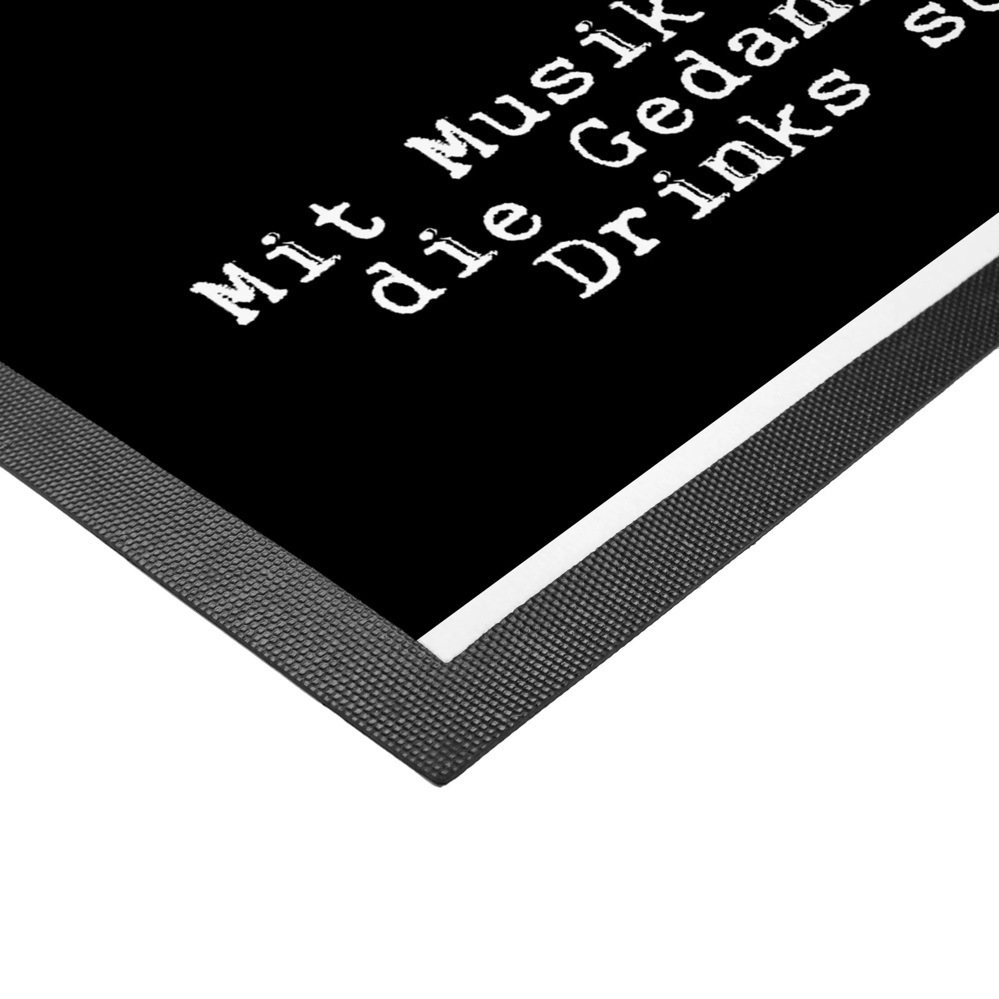 Mit einem Maß von 60 x 90 cm passt die Fußmatte ideal vor jede Haustür und sorgt für einen einladenden Empfang. Der breite Gummirand verhindert das Ausfransen und sorgt für eine rutschfeste Unterlage. „Mit Musik ist die Welt schöner, die Gedanken leiser, und die Drinks schmecken besser“, so der Slogan, der nicht nur heiter stimmt, sondern auch in jeder Begegnung ein Lächeln zaubert.