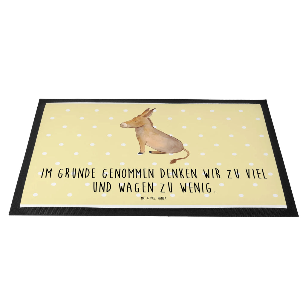 Die Fußmatte Esel von Mr. & Mrs. Panda ist nicht nur ein echter Hingucker, sondern auch der perfekte Weg, um Deinen Besuchern einen warmen Empfang zu bereiten! Mit dem niedlichen Esel-Motiv und dem inspirierenden Spruch "Im Grunde genommen denken wir zu viel und wagen zu wenig" aus der beliebten Small World Kollektion, bringst Du nicht nur Freude in Deinen Eingangsbereich, sondern auch eine Botschaft voller Lebensmut und Zuversicht.