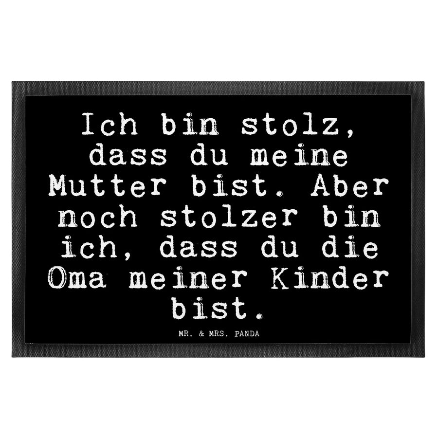 Diese Fußmatte von Mr. & Mrs. Panda trägt den herzlichen Spruch „Ich bin stolz, dass du meine Mutter bist. Aber noch stolzer bin ich, dass du die Oma meiner Kinder bist.“ und ist damit das perfekte Geschenk für besondere Gelegenheiten wie die Geburt eines Enkels, Muttertag, Geburtstag oder einfach als liebevolle Überraschung.