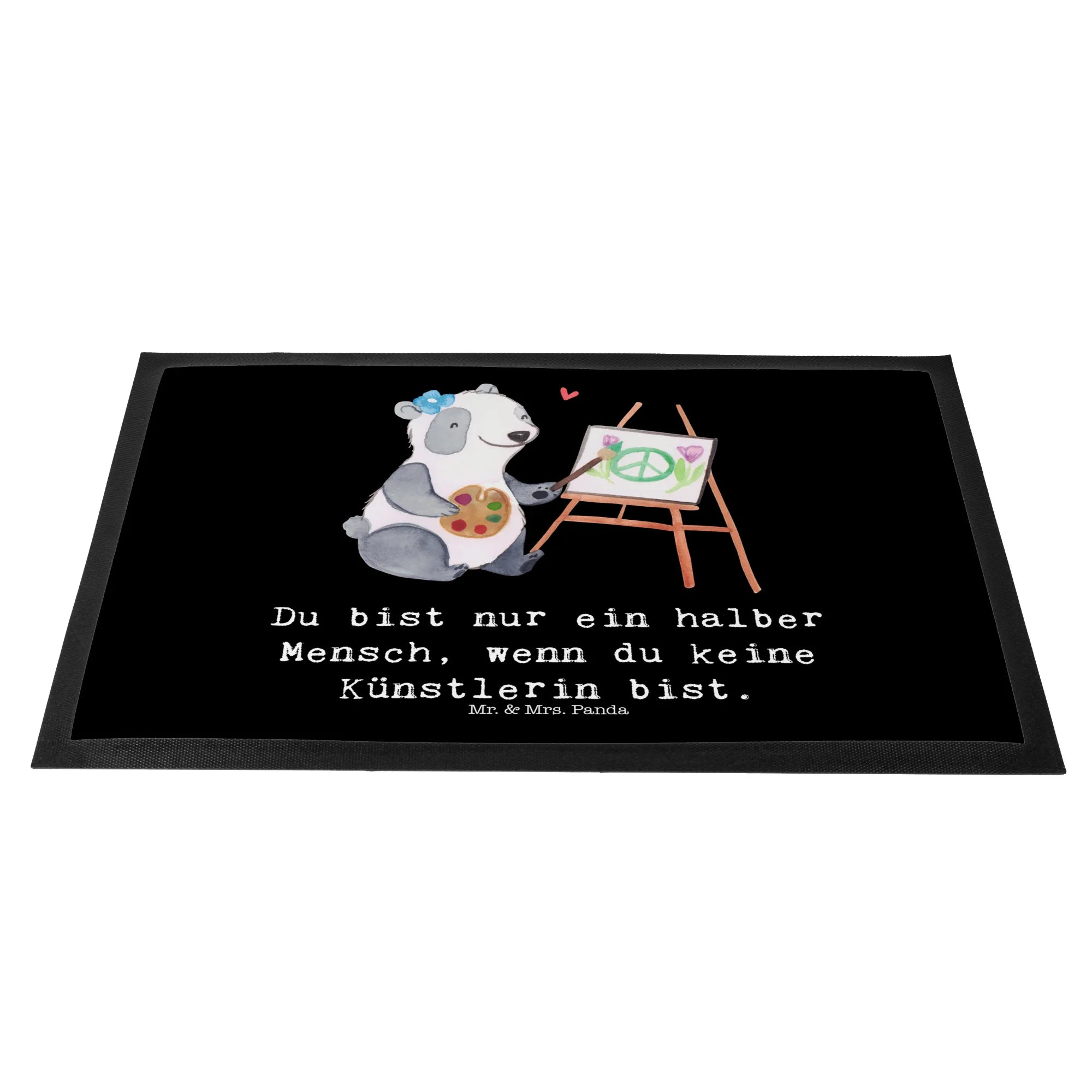 Die Fußmatte "Künstlerin mit Herz" von Mr. & Mrs. Panda ist das perfekte Geschenk für kreative Seelen und Kunstliebhaber. Mit ihrem einzigartigen Motiv, das einen süßen Panda zeigt, der vor einer Staffelei sitzt und ein wunderschönes Bild malt, spricht diese Matte nicht nur das Herz von Künstlern an, sondern auch das von all jenen, die Kunst schätzen.