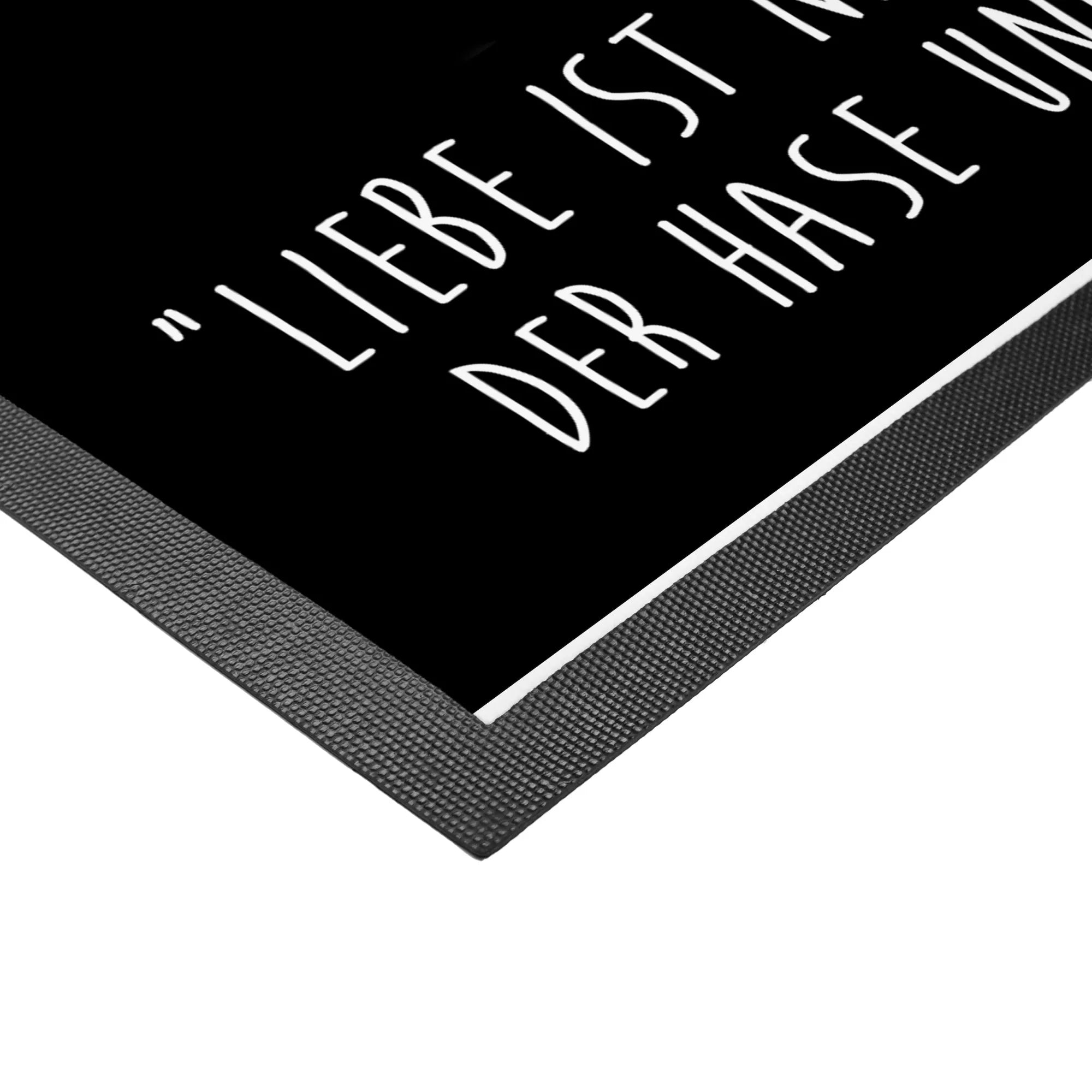 Der breite Gummirand verhindert das Ausfransen und sorgt für einen rutschfesten Halt. Mit einer Größe von 600 mm x 900 mm passt sie perfekt vor deine Haustür oder in den Flur. Die Small World Kollektion von Mr. & Mrs. Panda vereint niedliche Tiermotive und lebensfrohe Sprüche und macht jedes Produkt zu etwas ganz Besonderem. Verschenke diese Fußmatte zum Valentinstag, zu einem Jahrestag oder einfach als liebevolle Aufmerksamkeit zwischendurch. Denn wie der Hase schon sagt: selbst Schmerz gehört zur Liebe dazu!