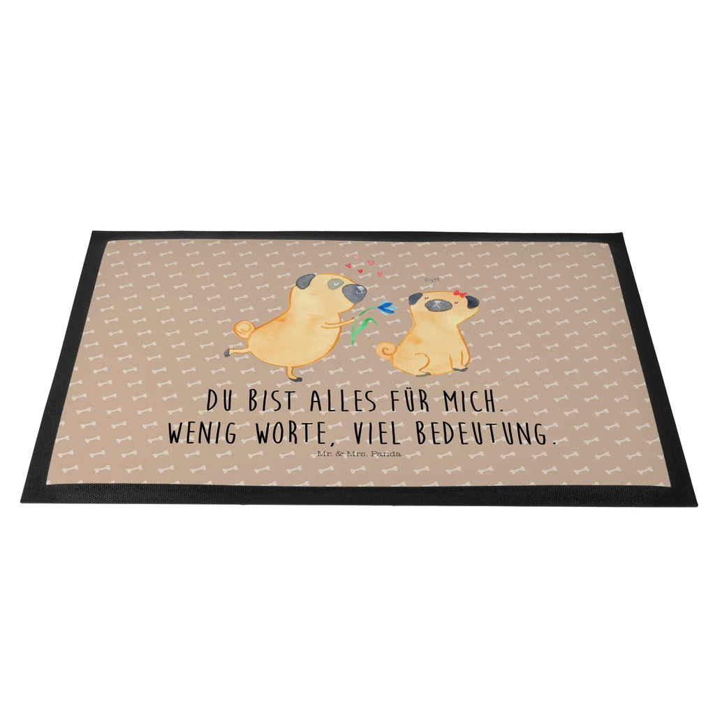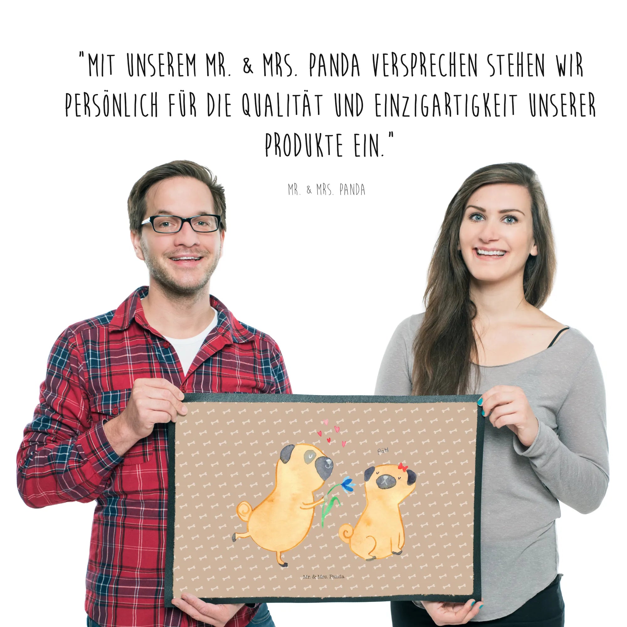 Schaffe eine einladende Atmosphäre und zeige deinen individuellen Stil. Die Fußmatte 'Mops verliebt' von Mr. & Mrs. Panda ist daher nicht nur praktisch, sondern auch ein wunderschöner Hingucker!