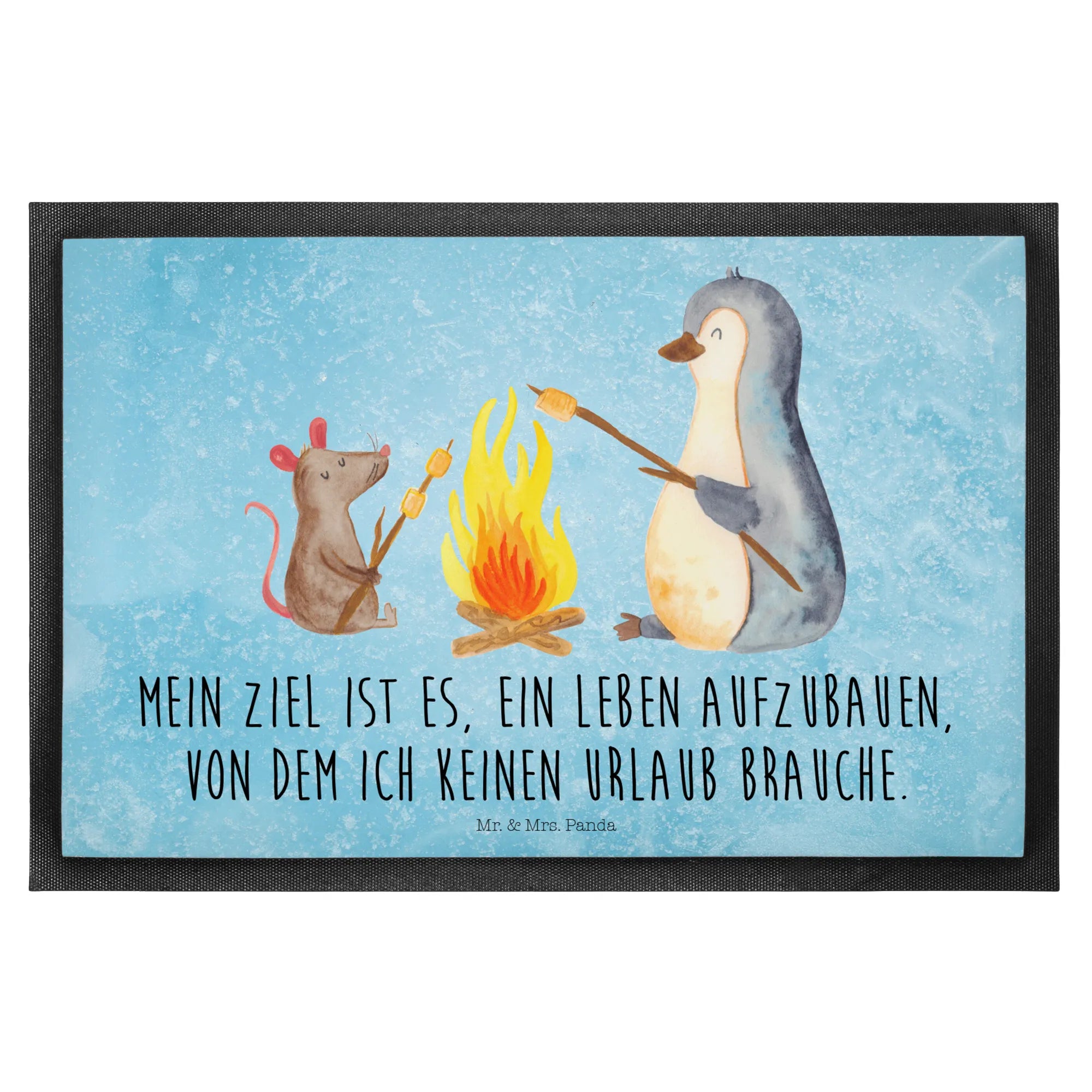 Die Fußmatte mit dem Motiv Pinguin Lagerfeuer von Mr. & Mrs. Panda ist der perfekte Hingucker für jeden Eingang! Egal, ob du einen neugierigen Besuch oder einfach nur ein herzliches Willkommen ausdrücken möchtest, diese liebevoll gestaltete Schmutzmatte wird in deiner Haustür zum echten Dialogstarter.