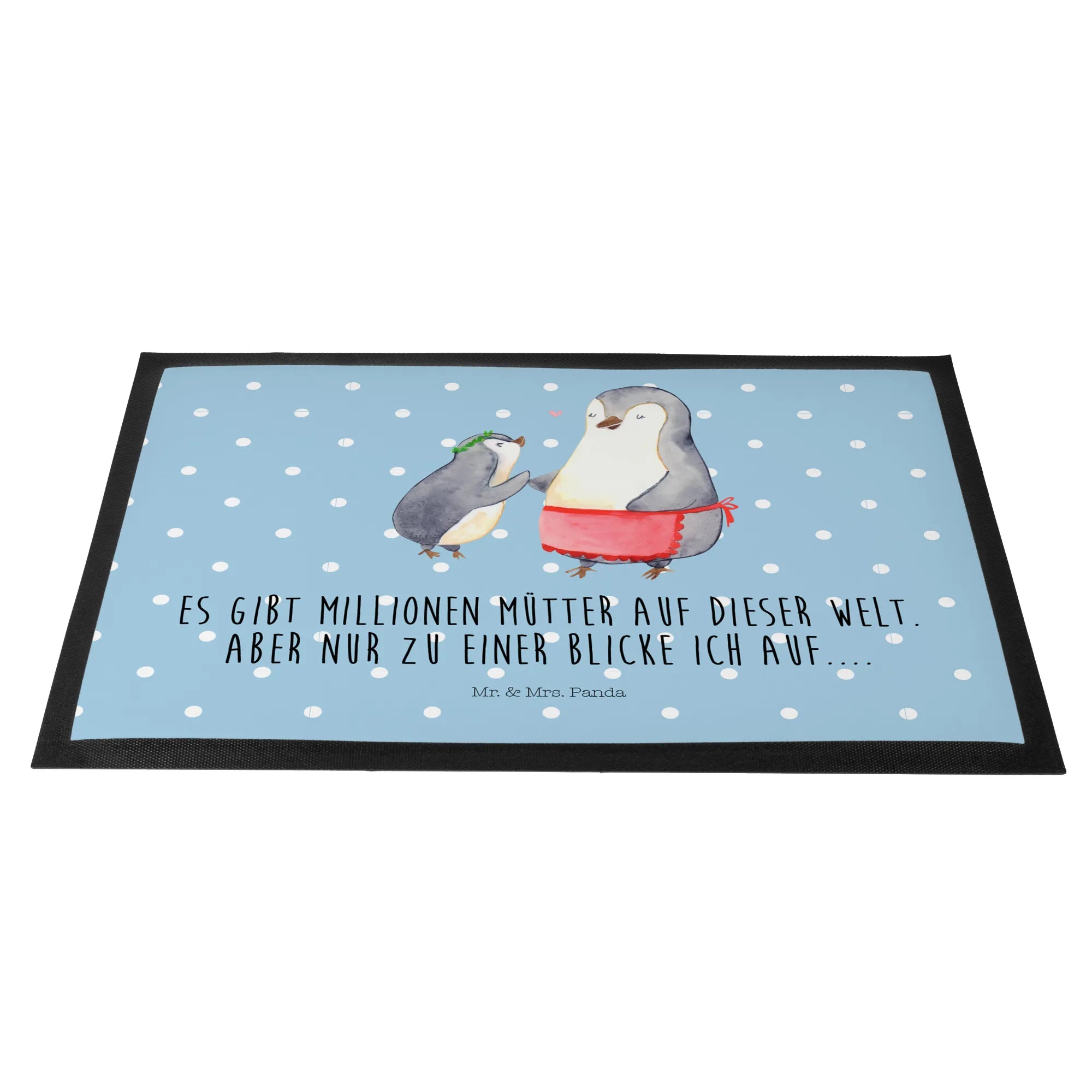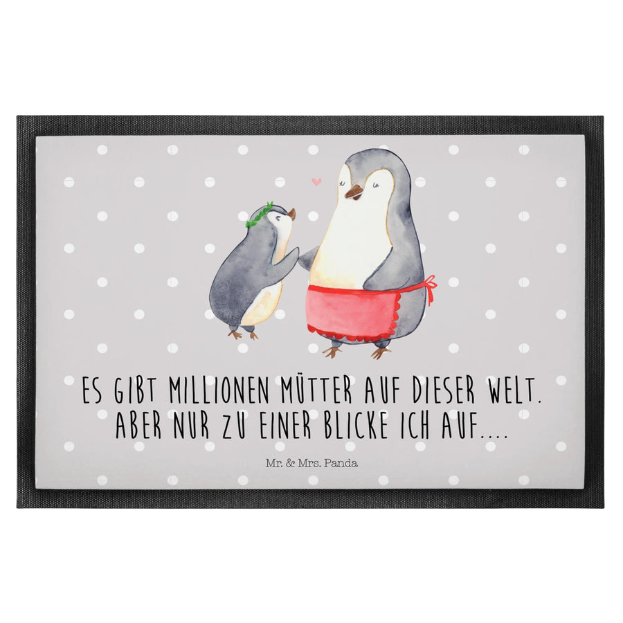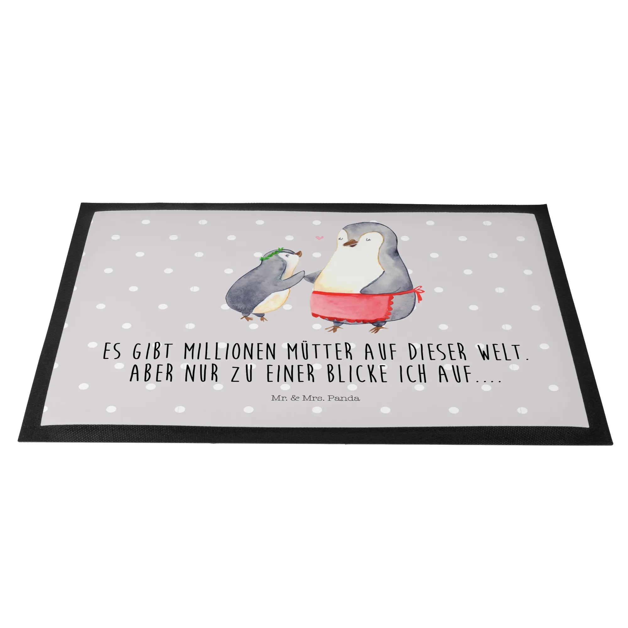 Die wunderschöne Fußmatte "Pinguin mit Kind" von Mr. & Mrs. Panda ist das perfekte Geschenk für alle Mamas und Familienmitglieder, die Du liebst. Diese herzerwärmende Fußmatte verbindet Funktionalität und Stil auf zauberhafte Weise. Stell Dir vor, wie der süße Pinguin mit seiner kleinen Aufmachung jedem Besucher ein Lächeln ins Gesicht zaubert! Das Motiv zeigt einen liebevollen Pinguin in einer verspielten Pose, der in einer roten Schürze die jüngeren Pinguine umarmt. Eine sanfte Darstellung, die genau die Zuneigung symbolisiert, die Mütter für ihre Kinder empfinden. Durch den romantischen Spruch "Es gibt Millionen Mütter auf dieser Welt. Aber nur zu einer blicke ich auf...." wird die Botschaft noch persönlicher und verleiht der Matte einen besonderen Touch.