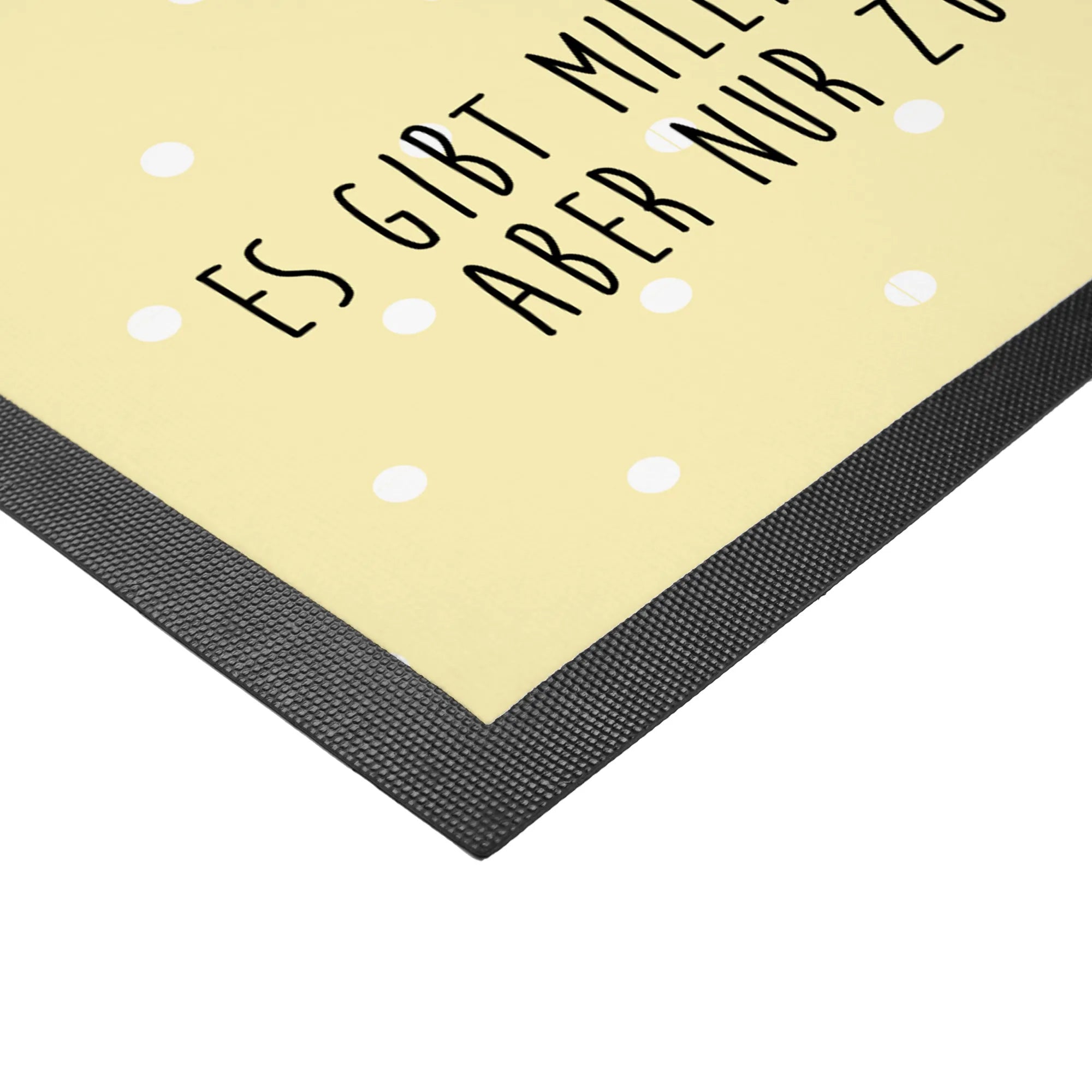 Zeige deinen einzigartigen Stil mit der Fußmatte von Mr. & Mrs. Panda! Diese Matte hat die Maße von 600 mm x 900 mm x 5 mm und ist ein echter Eyecatcher in jedem Eingangsbereich. Die robuste Vorderseite aus Polyesterfilz ist abriebfest und wetterbeständig, während die gummierte Rückseite für sicheren Halt sorgt. Ein breiter Gummirand verhindert das Ausfransen und garantiert eine lange Lebensdauer. Pflegeleicht kannst du die Matte einfach ausklopfen und bei Bedarf bis 30°C waschen. Ideal für dein Zuhause oder um Freunden eine Freude zu machen, bringt die Fußmatte mit ihren lustigen Sprüchen und Designs Farbe in jeden Flur. Erhältlich in verschiedenen Größen, ist sie die perfekte Wahl für jeden Haushalt!