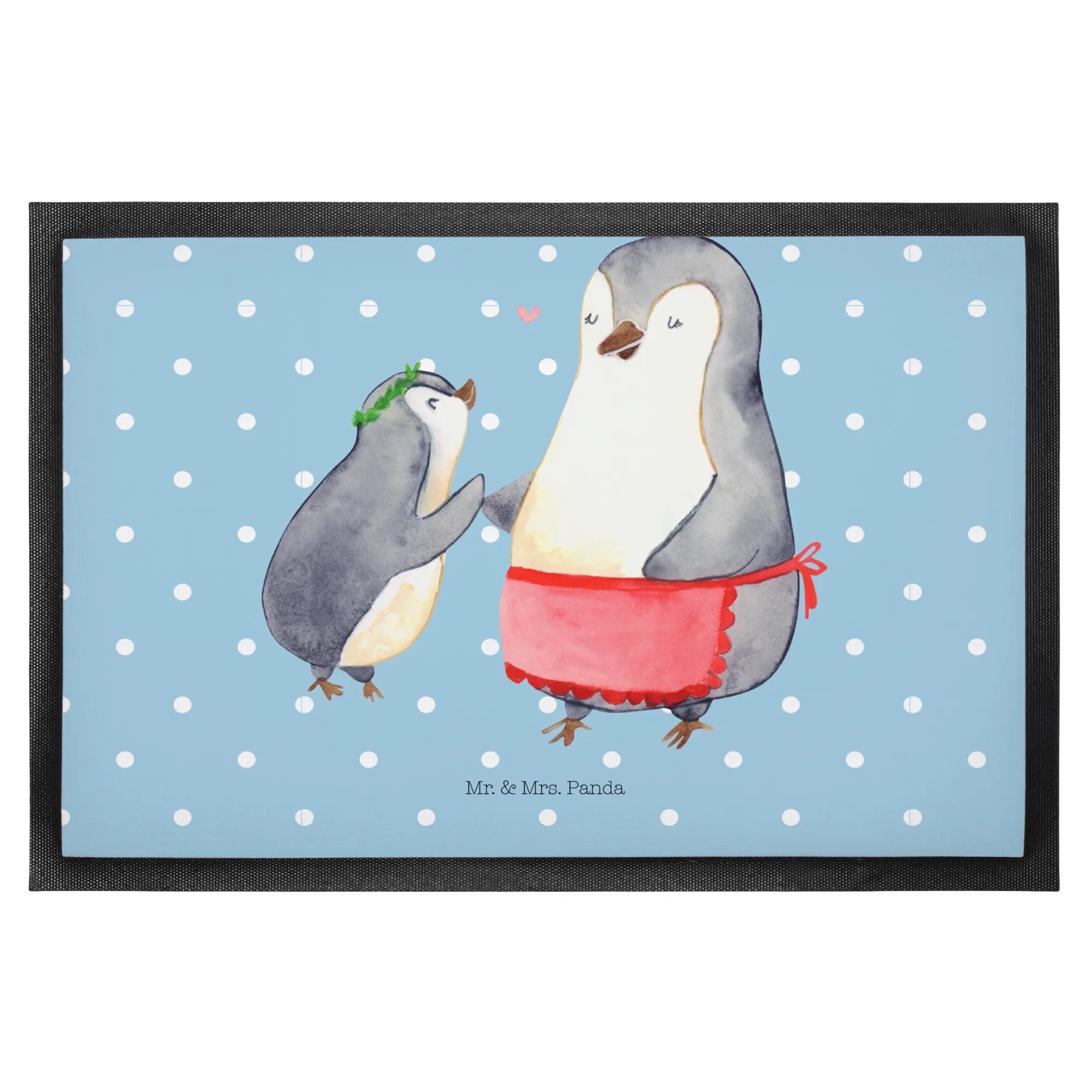 Der große Pinguin mit roter Schürze steht fürsorglich da, während das kleine Pinguin-Kind mit grünem Kranz auf dem Kopf zu ihm aufblickt – eine herzerwärmende Szene, die perfekt den gesamten Charme von Familie und Zuneigung einfängt. Diese Fußmatte ist ideal für jeden Anlass: Sei es zum Muttertag, zum Geburtstag oder einfach als kleine Aufmerksamkeit, um zu zeigen, wie wichtig dir deine Mama ist.