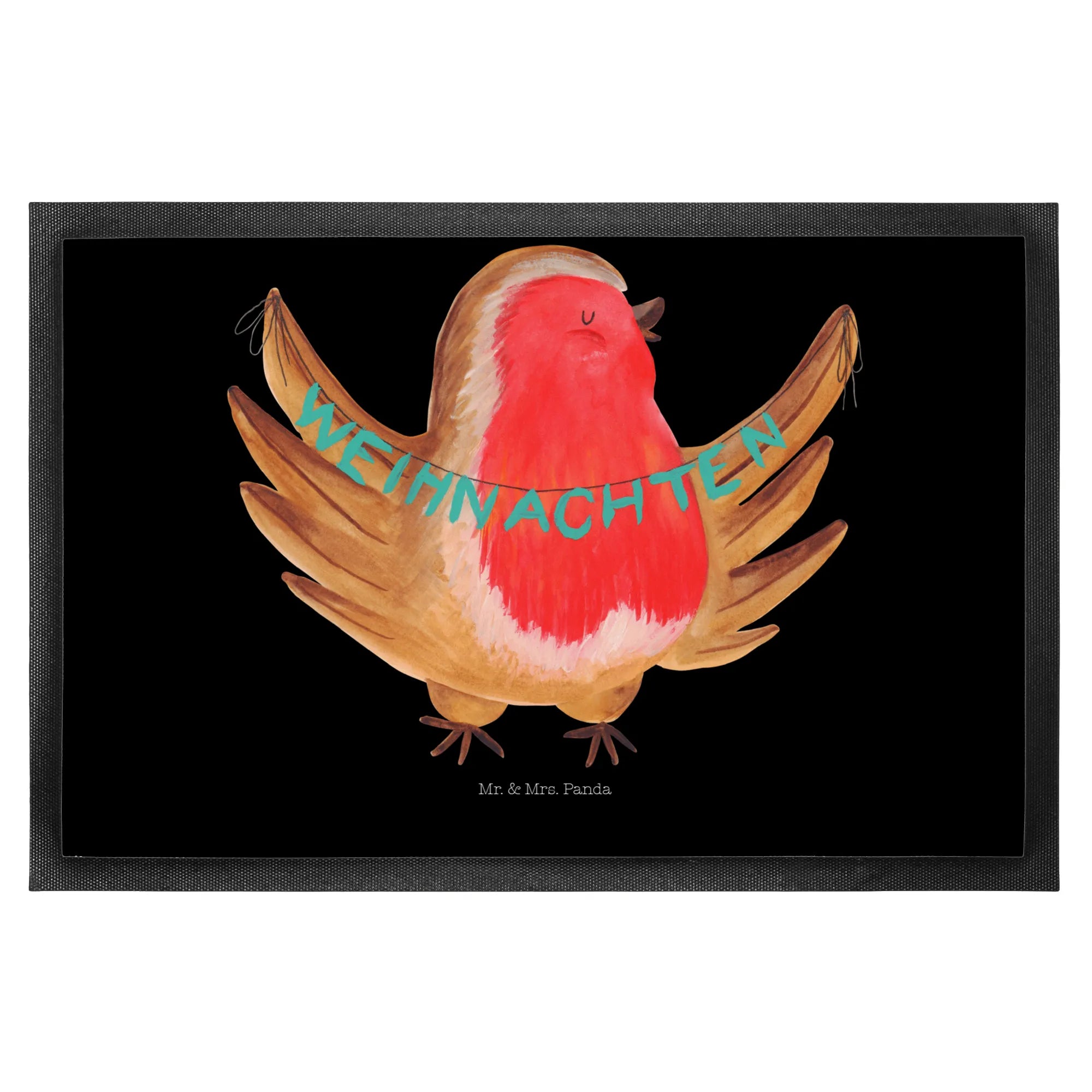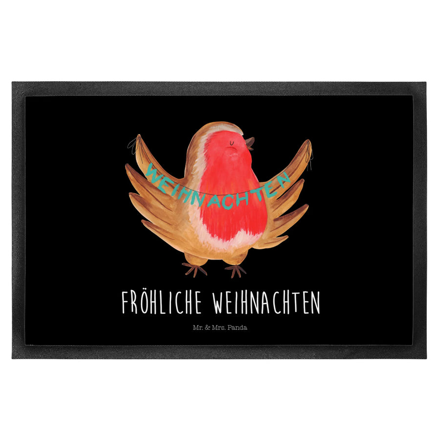 Fußmatte Rotkehlchen Weihnachten - 60 x 90 cm - mit Spruch - Schwarz