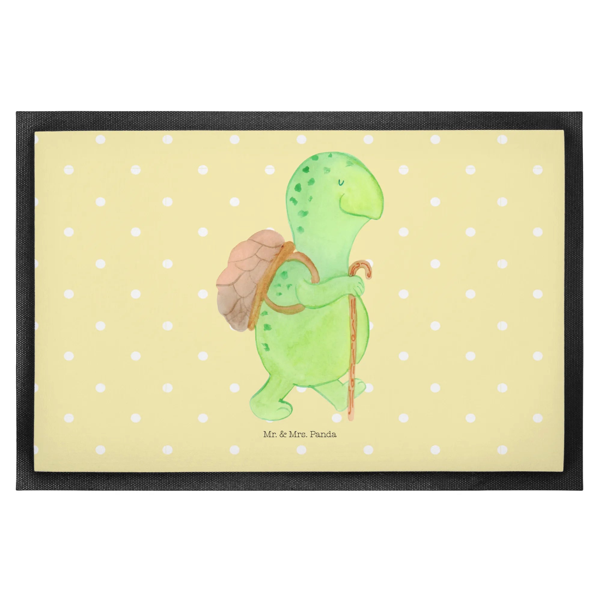 Entdecke die wunderschöne Fußmatte mit dem Motiv der Schildkröte Wanderer von Mr. & Mrs. Panda, die nicht nur funktional ist, sondern auch als perfektes Geschenk für Freunde und Familie glänzt!