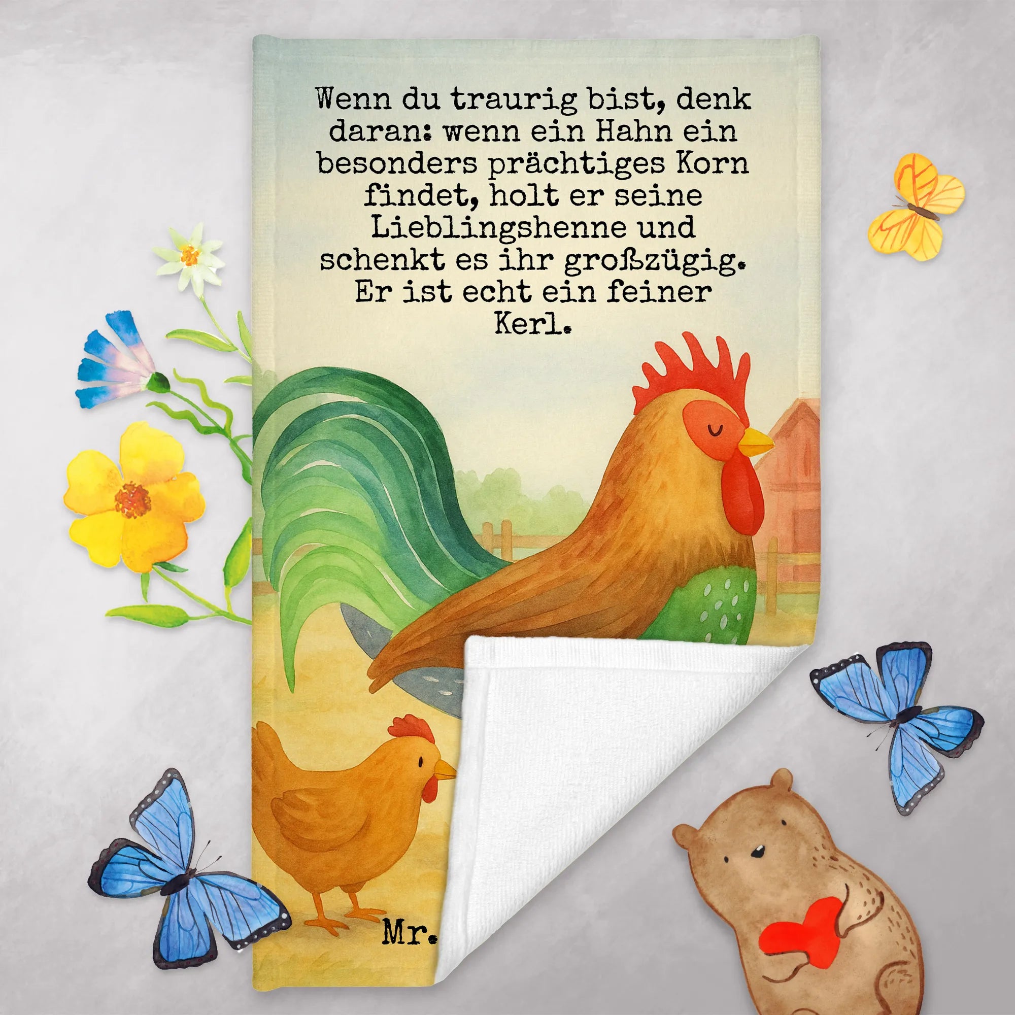 Gästehandtuch Hahn Korn Design - mit Spruch