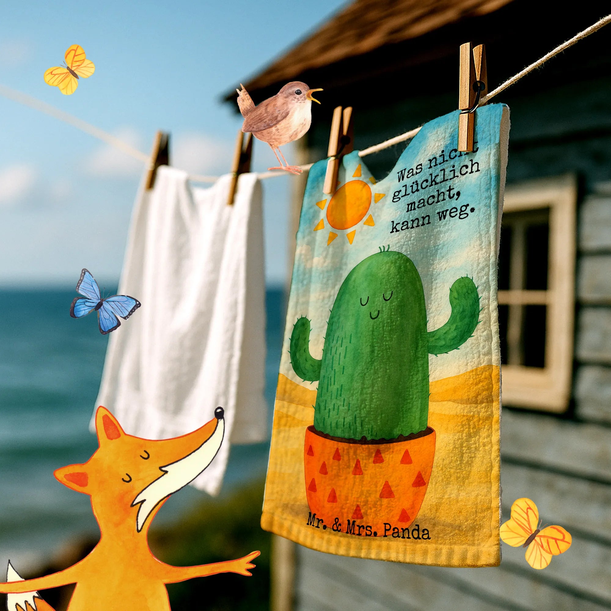 Gästehandtuch Kaktus Sonne Design – Mr. & Mrs. Panda