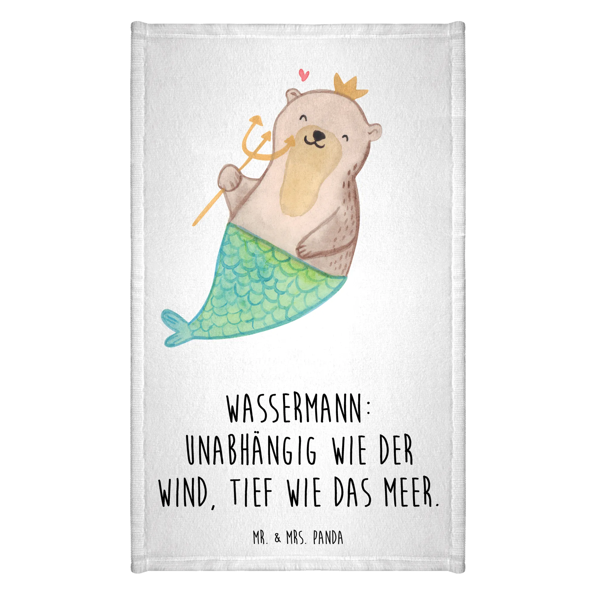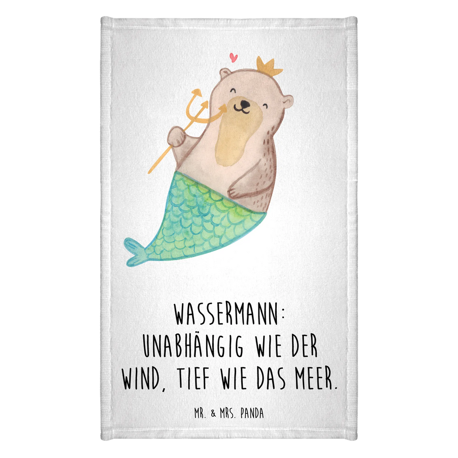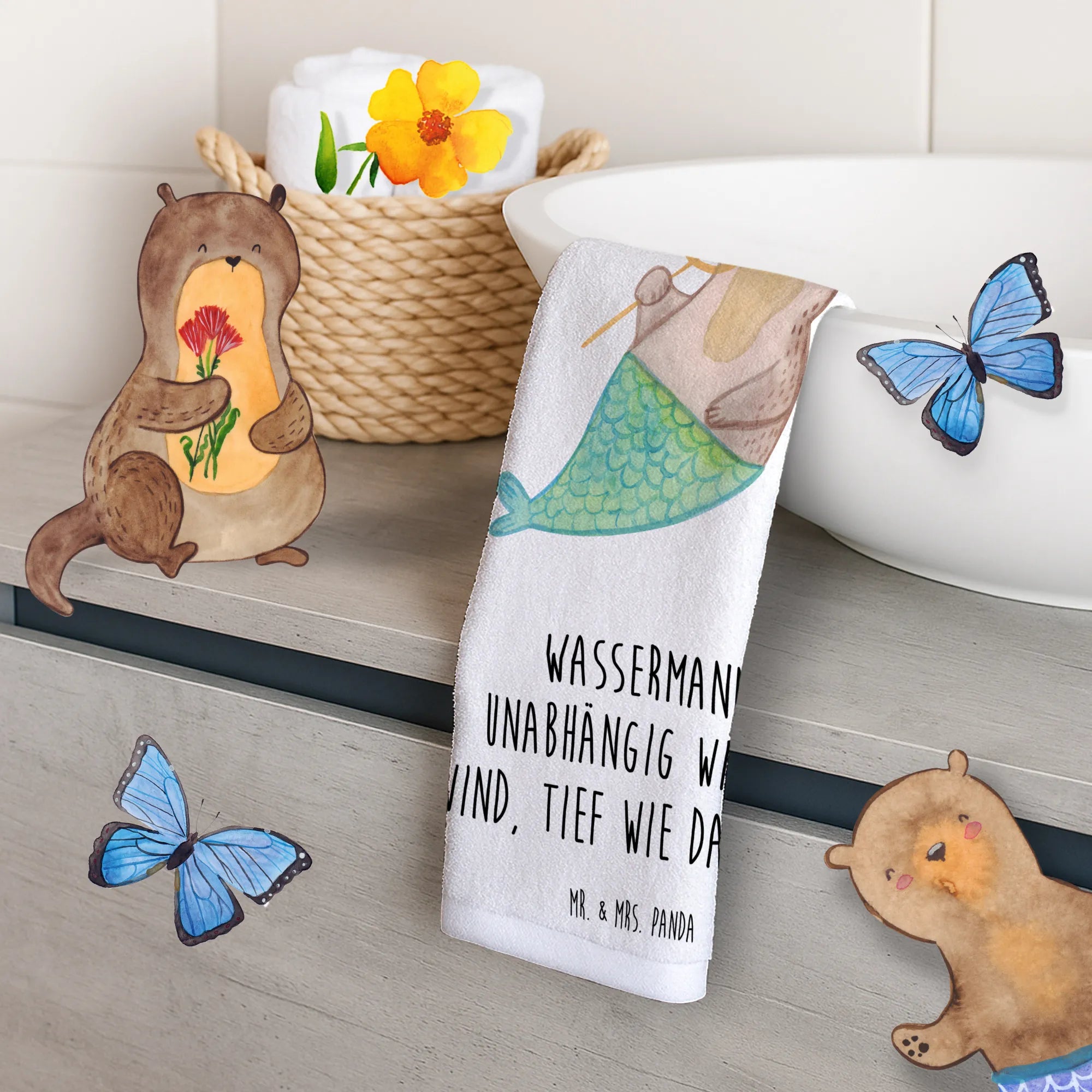 Das Gästehandtuch Wassermann von Mr. & Mrs. Panda ist nicht nur ein praktisches Accessoire für dein Badezimmer, sondern auch eine liebevolle Hommage an das faszinierende Sternzeichen Wassermann. Mit einem niedlichen, handgezeichneten Motiv eines Otters, der wie ein Wassermann aussieht – mit einer Krone auf dem Kopf und einem schillernden Fischschwanz – verleiht dieses Handtuch deinem Gästebad einen fröhlichen Touch.