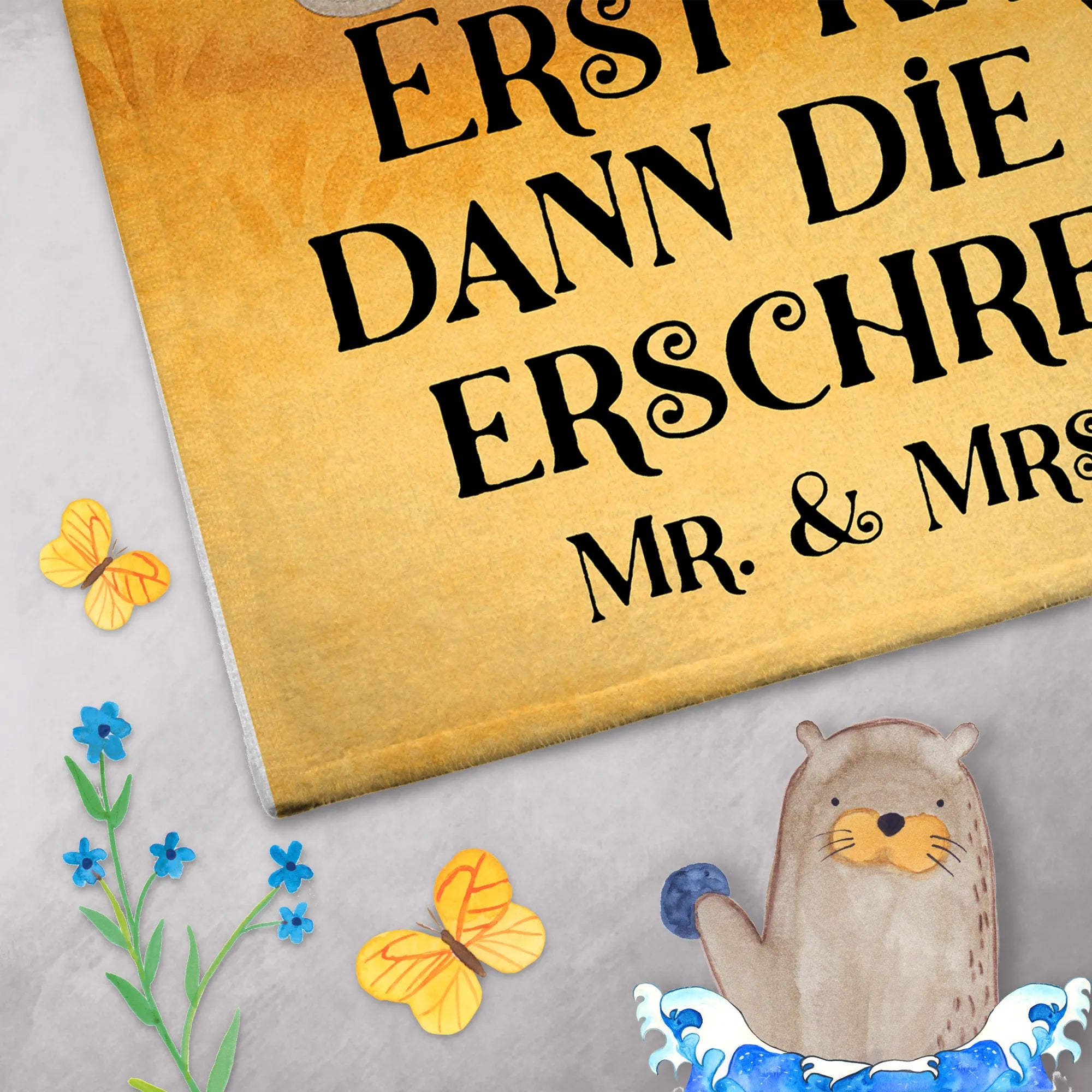 Das fröhliche Gästehandtuch von Mr. & Mrs. Panda ist ein echter Blickfang für dein Badezimmer. Mit einer praktischen Größe von 300 mm x 500 mm und aus flauschiger Baumwollmischung gefertigt, bietet es nicht nur einen hohen Komfort, sondern sieht auch wunderschön aus. Die bunten Motive und Sprüche machen es zu einem tollen Highlight im Gästebad! Mit einem Gewicht von nur 60 g ist es leicht, aber dennoch saugfähig und ideal für den täglichen Gebrauch. Das Handtuch ist rundum umsäumt und hat eine doppelte Naht, um die Haltbarkeit zu erhöhen. Du kannst es bequem bei 30°C in der Waschmaschine reinigen und im Trockner bei niedrigen Temperaturen trocknen. Mach dein Badezimmer zu einem Ort der Freude und Entspannung mit diesem liebevoll gestalteten Gästehandtuch!