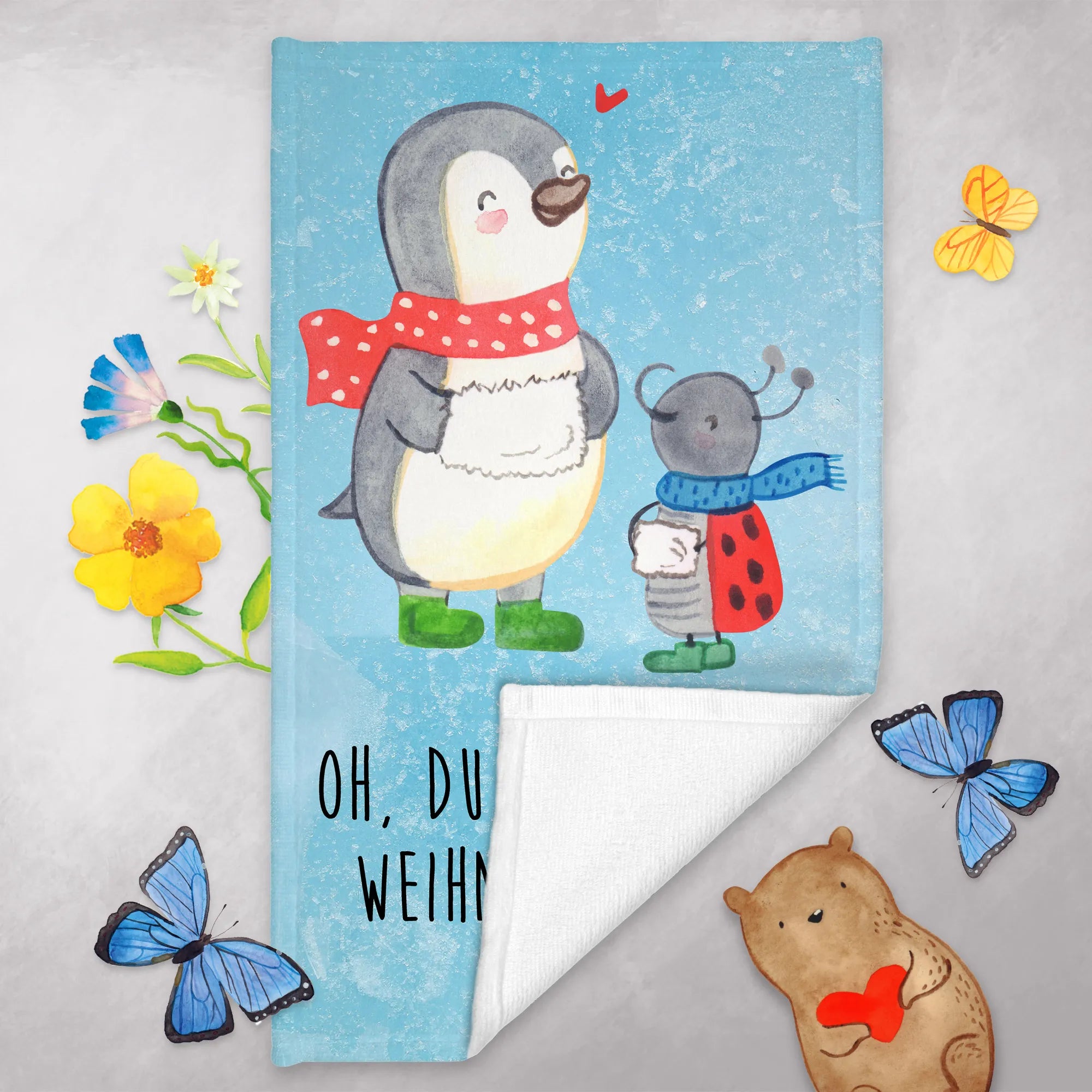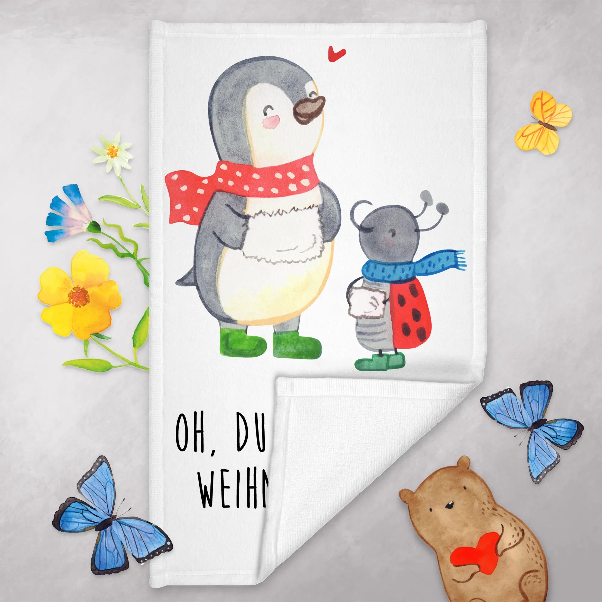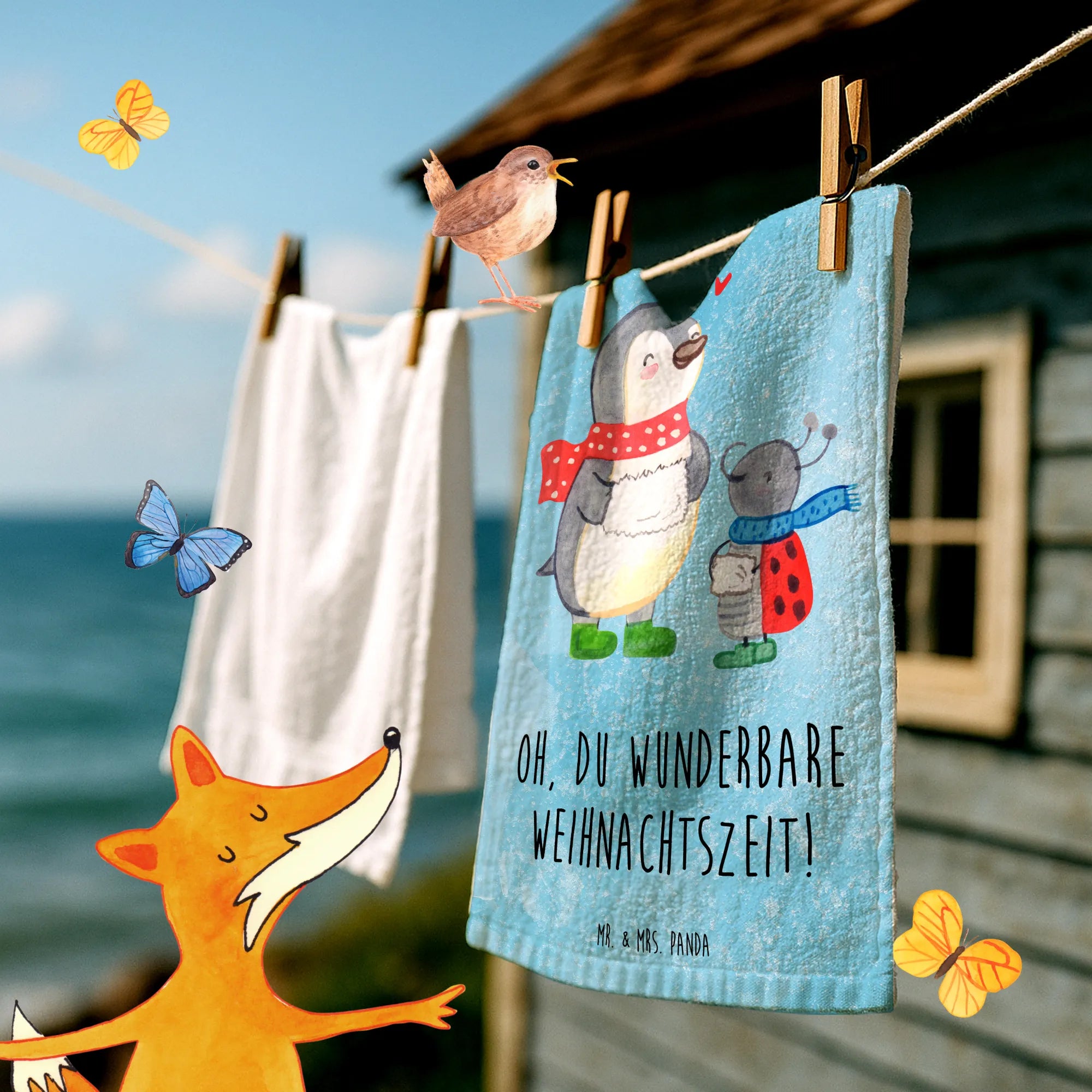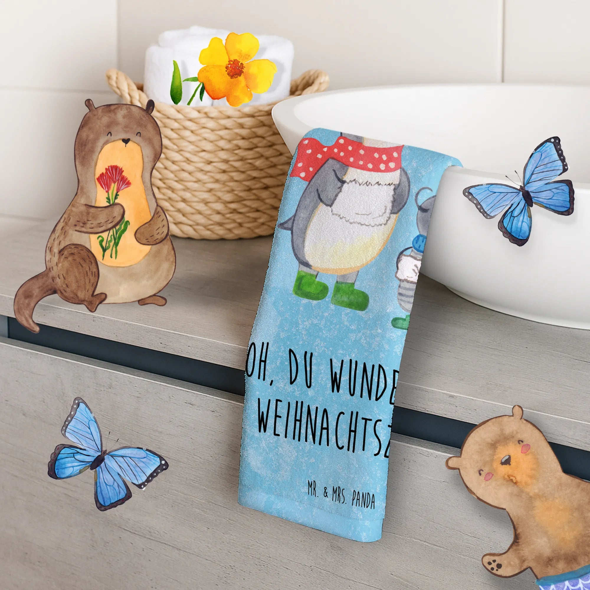 Das Gästehandtuch 'Smörle Winterzeit' von Mr. & Mrs. Panda ist das perfekte Geschenk für all jene, die die besinnliche Weihnachtszeit in vollen Zügen genießen möchten. Mit einem fröhlichen Design, das einen bezaubernden Pinguin und den kleinen Smörle zeigt, verbreitet es sofort gute Laune.
