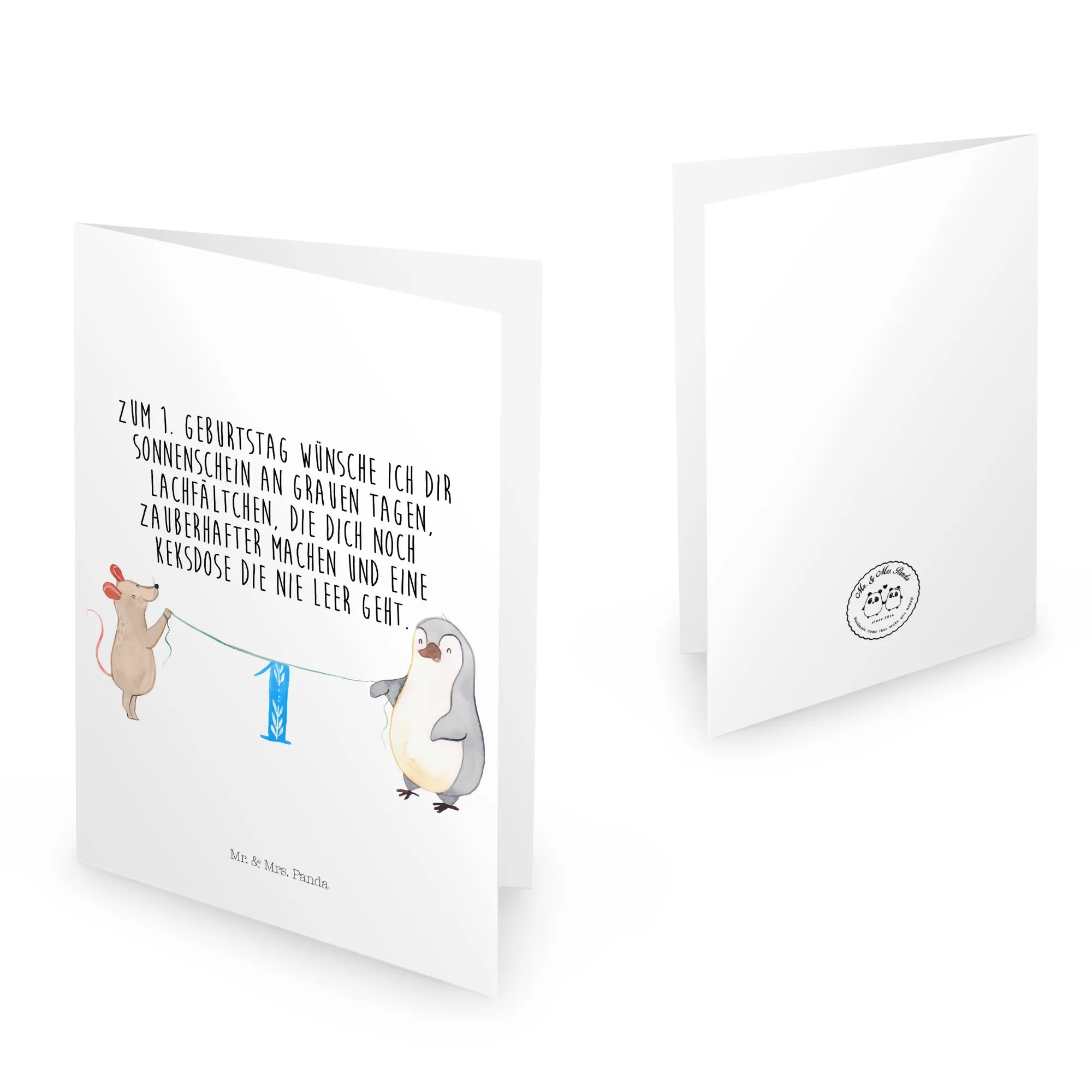 Feiere den ersten Geburtstag mit einer liebevollen Geburtstagskarte von Mr. & Mrs. Panda! 🎉 Diese ganz besondere Grusskarte mit dem süßen Motiv von einer Maus und einem Pinguin ist nicht nur ein wunderbares Geschenk, sondern auch eine herzliche Einladung zum Feiern. Die Karte ist genau das Richtige, um Deinen Lieben zu zeigen, wie sehr Du sie schätzt. Hier ist der perfekte Begleiter für den ersten Geburtstag - ein Tag, an dem Freude und Glück in der Luft liegen!