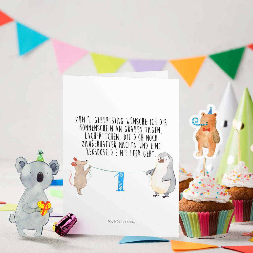 Geburtstagskarte 1. Geburtstag Maus Pinguin
