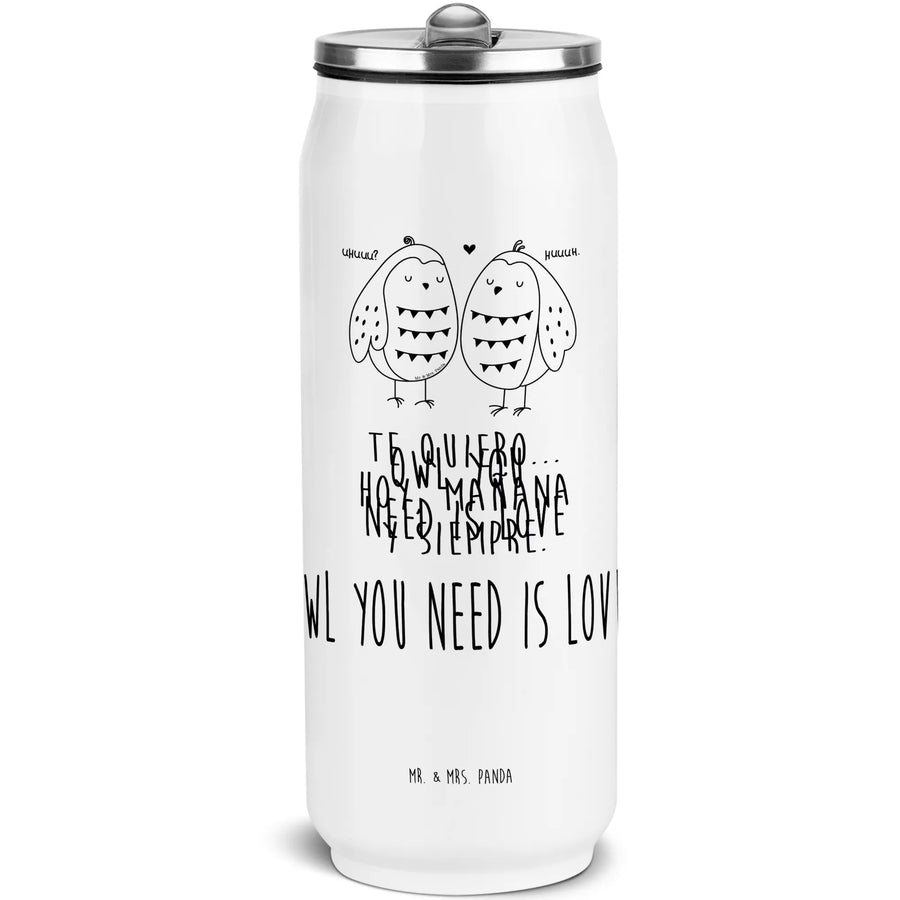 Entdecke die zauberhafte Getränkedosen Trinkflasche von Mr. & Mrs. Panda mit dem süßen Motiv "Eule Liebe"! Diese isolierte Edelstahlflasche ist nicht nur ein praktisches Alltagsobjekt, sondern auch ein besonders süßes Geschenk für Freunde und Familie.