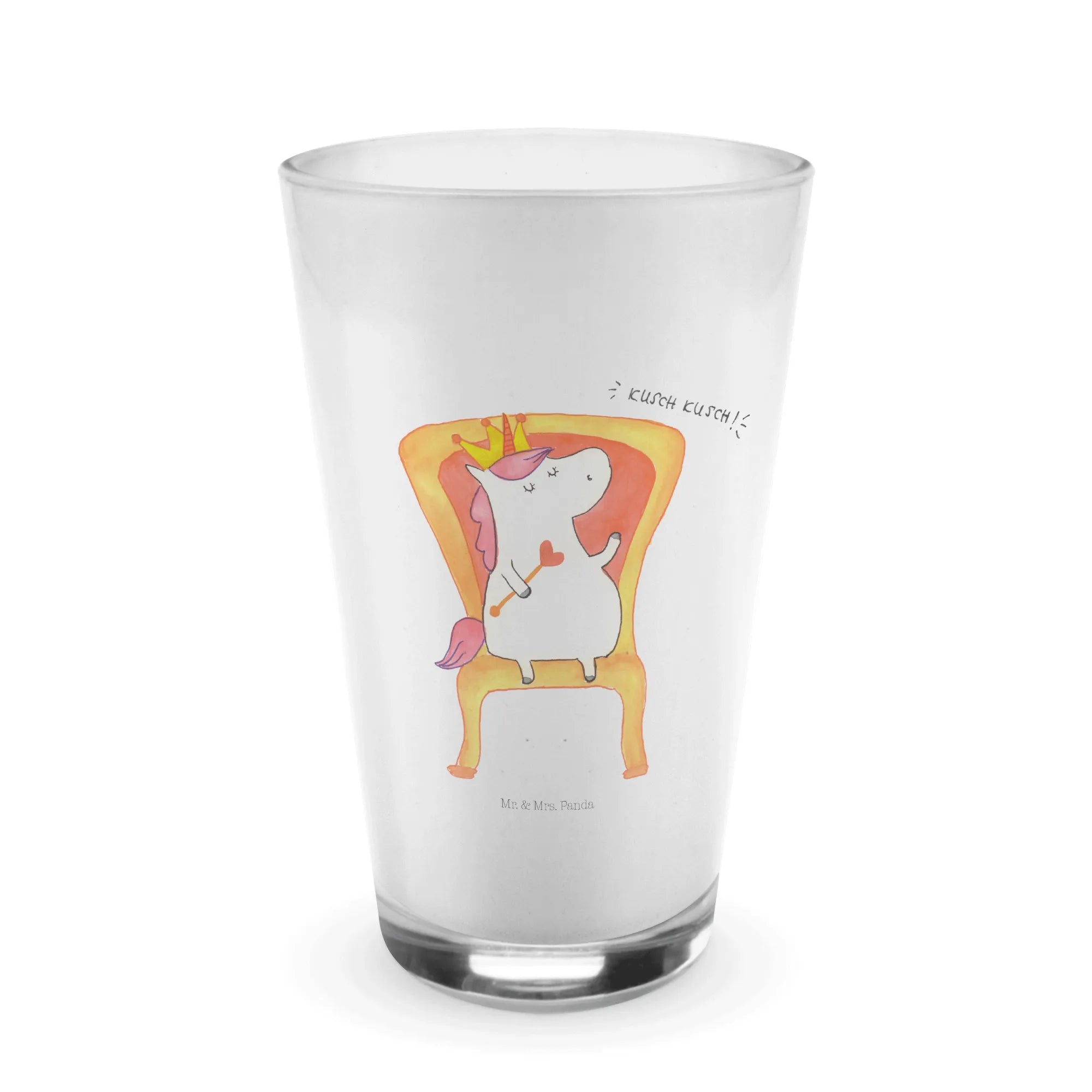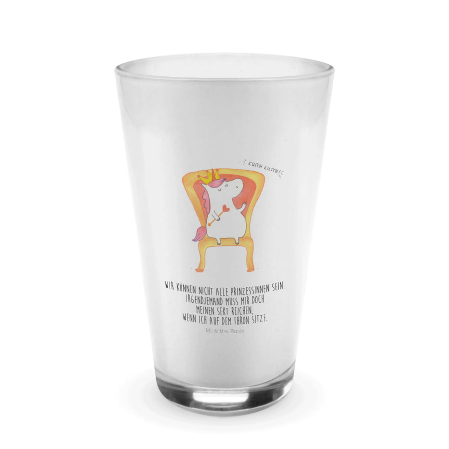 Das Einhorn König Glas von Mr. & Mrs. Panda ist das perfekte Geschenk für alle Einhornliebhaber und Feierfreudigen! Mit einem süßen, nostalgischen Motiv eines Einhorns, das majestätisch auf einem Thron sitzt, bringt dieses Glas Freude und Glanz in deinen Alltag. Es ist ideal für heiße Cappuccinos, leckere Latte Macchiatos oder auch erfrischende Longdrinks wie Cocktails und selbstgemachte Limonade. Das hitzebeständige, dickwandige Premiumglas mit edler, matter Oberfläche sorgt nicht nur für einen Blickfang, sondern auch für den perfekten Genuss deines Lieblingsgetränks.