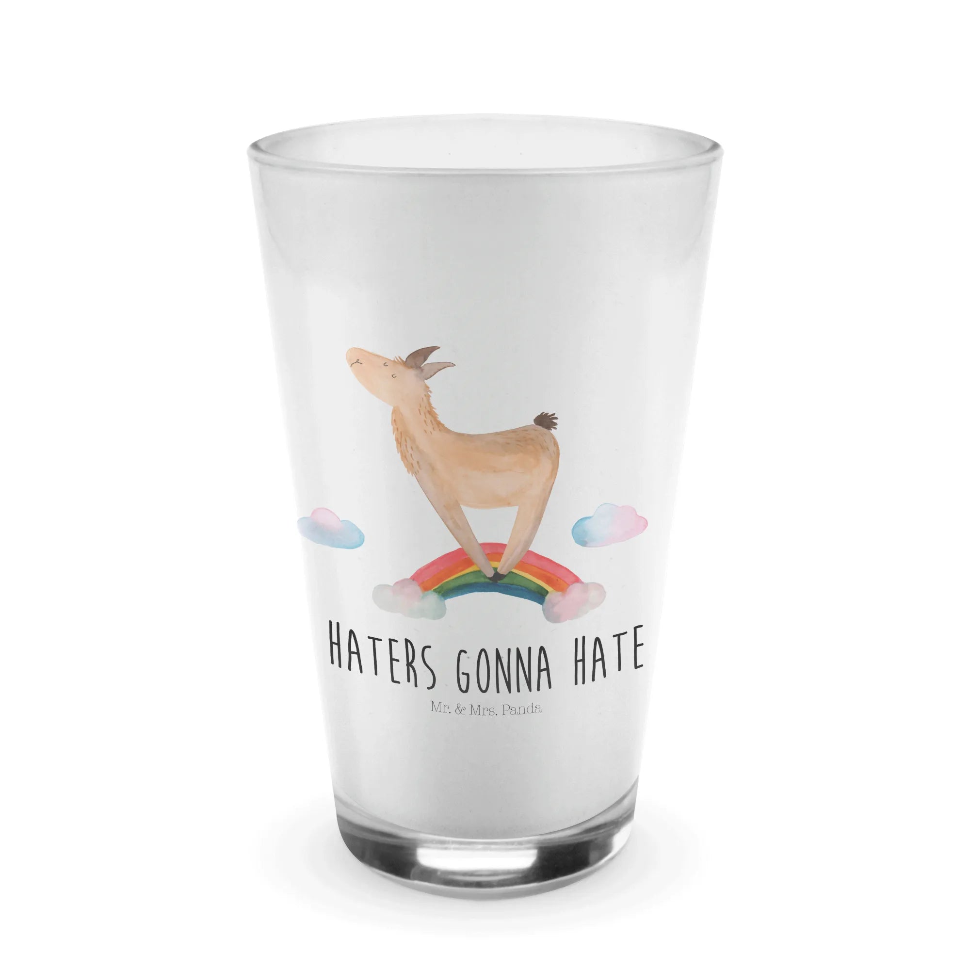 Das wunderschöne Cappuccino Glas mit dem süßen Lama Regenbogen-Motiv von Mr. & Mrs. Panda ist das perfekte Geschenk für alle Lama-Fans, Kaffeeliebhaber oder einfach für diejenigen, die das Besondere suchen. Mit einer großzügigen Größe von 150 mm Höhe und 88 mm Durchmesser bietet das hochwertige, satiniertes dickwandige Premiumglas genug Platz für deinen schaumigen Latte Macchiato oder ein erfrischendes Getränk deiner Wahl.