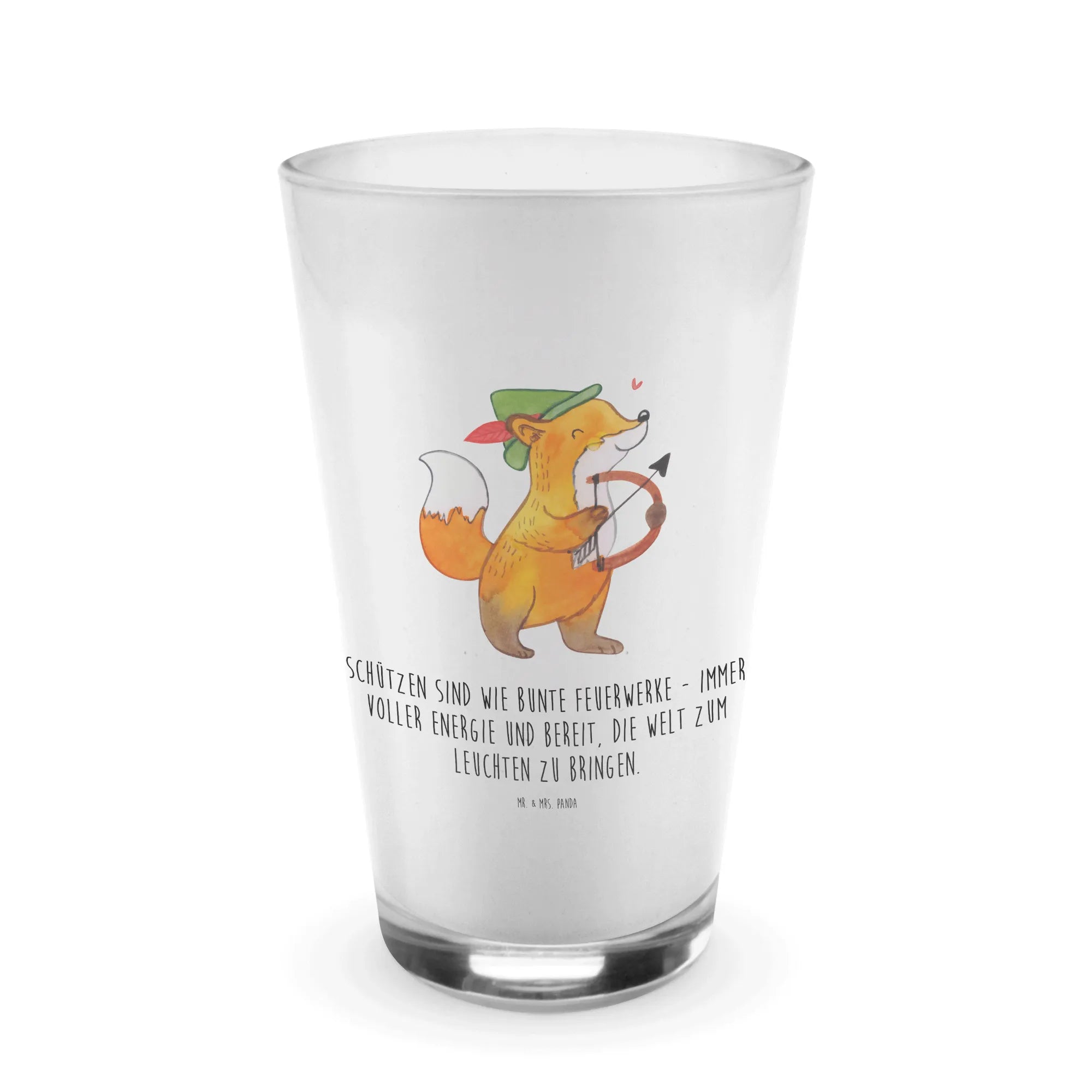 Das Mr. & Mrs. Panda Cappuccino Glas mit Schütze Astrologie Motiv ist das perfekte Geschenk für alle, die die Geheimnisse der Sterne lieben! Mit seinem charmanten Design und der liebevollen Zeichnung eines orange-braunen Fuchses, der im Schütze-Stil auf zwei Beinen steht und seinen Bogen hält, bringt dieses Glas Freude und Farbe in jeden Haushalt.