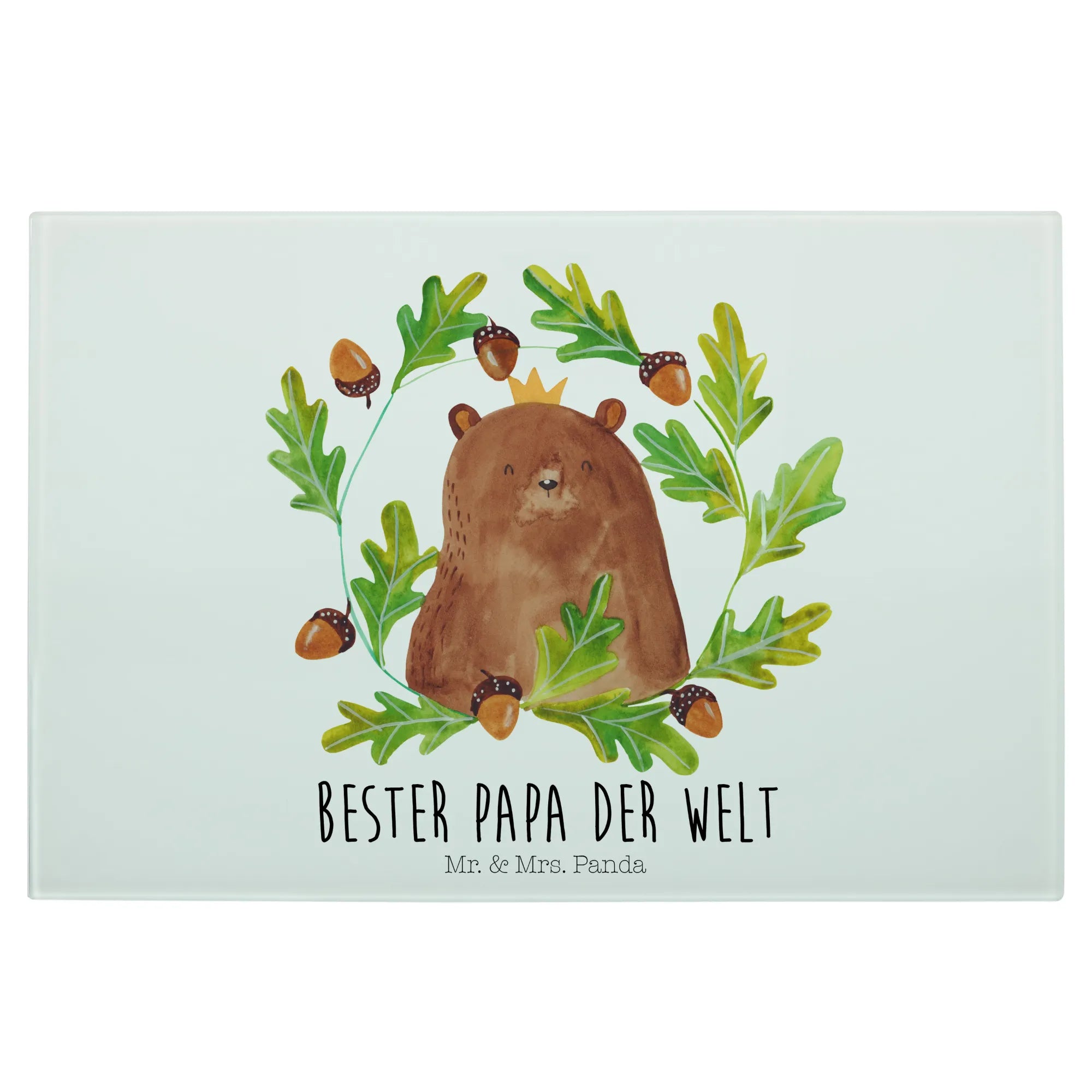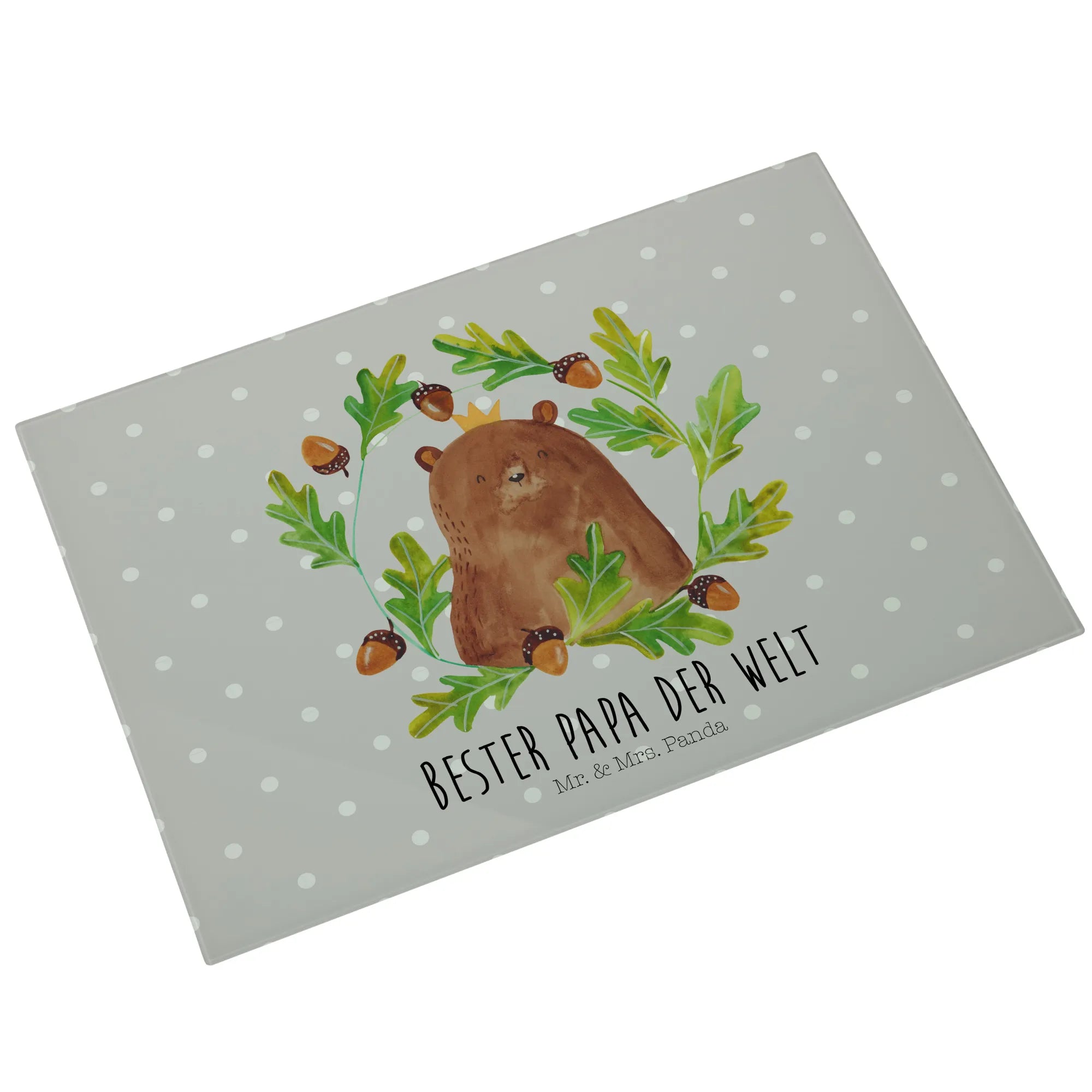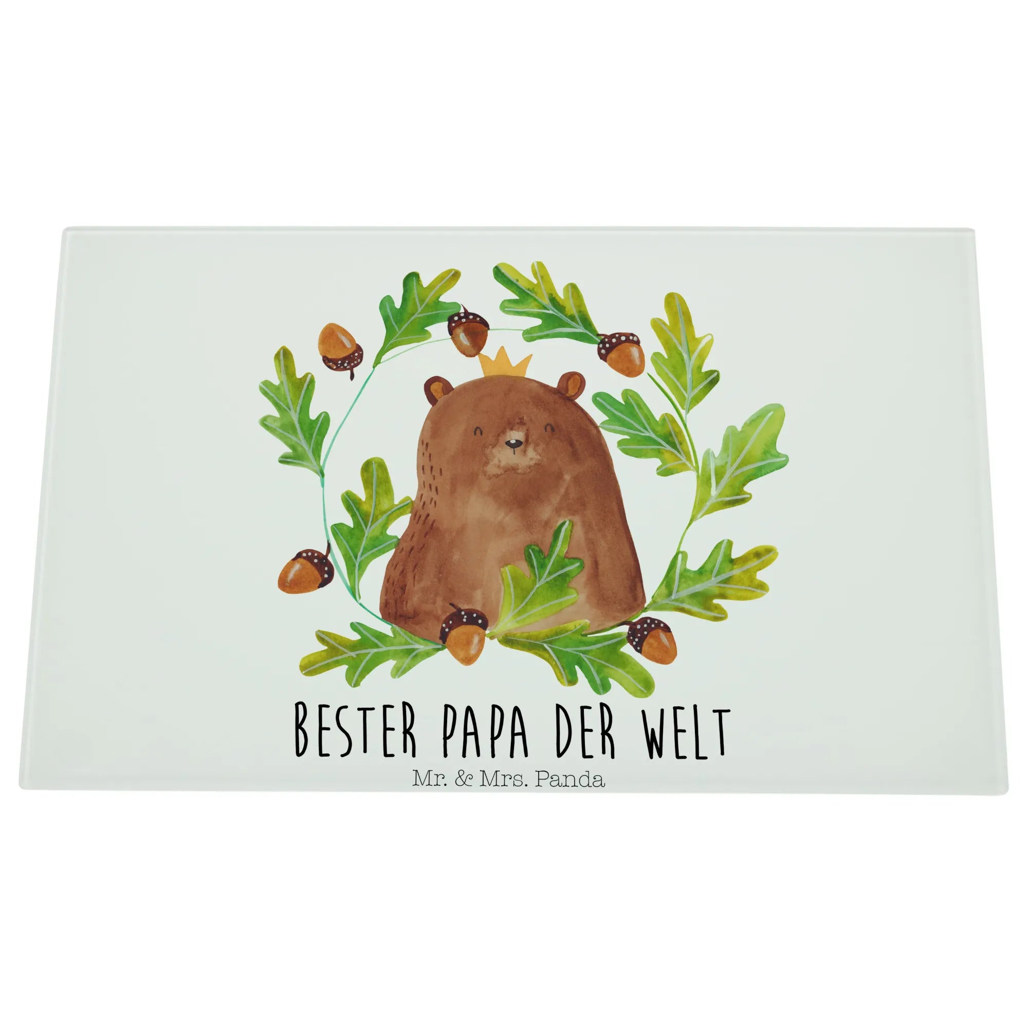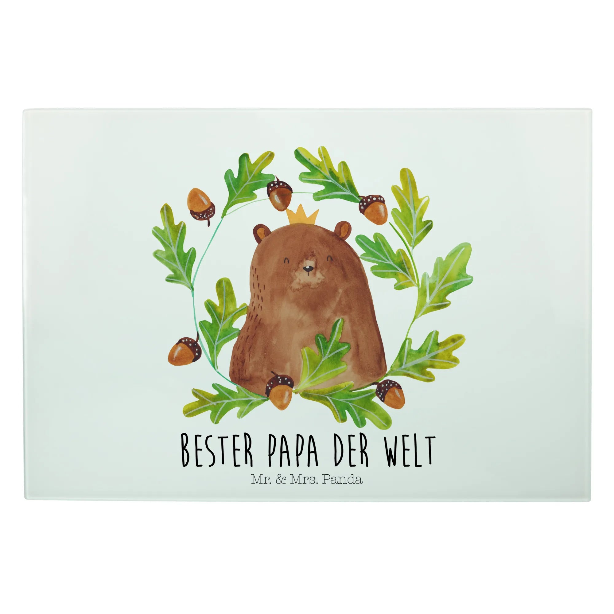Das charmante Medium Glas Schneidbrett mit dem süßen Motiv "Bär König" von Mr. & Mrs. Panda ist die perfekte Geschenkidee für jeden Anlass, besonders zum Vatertag oder als Überraschung für den weltbesten Papa!