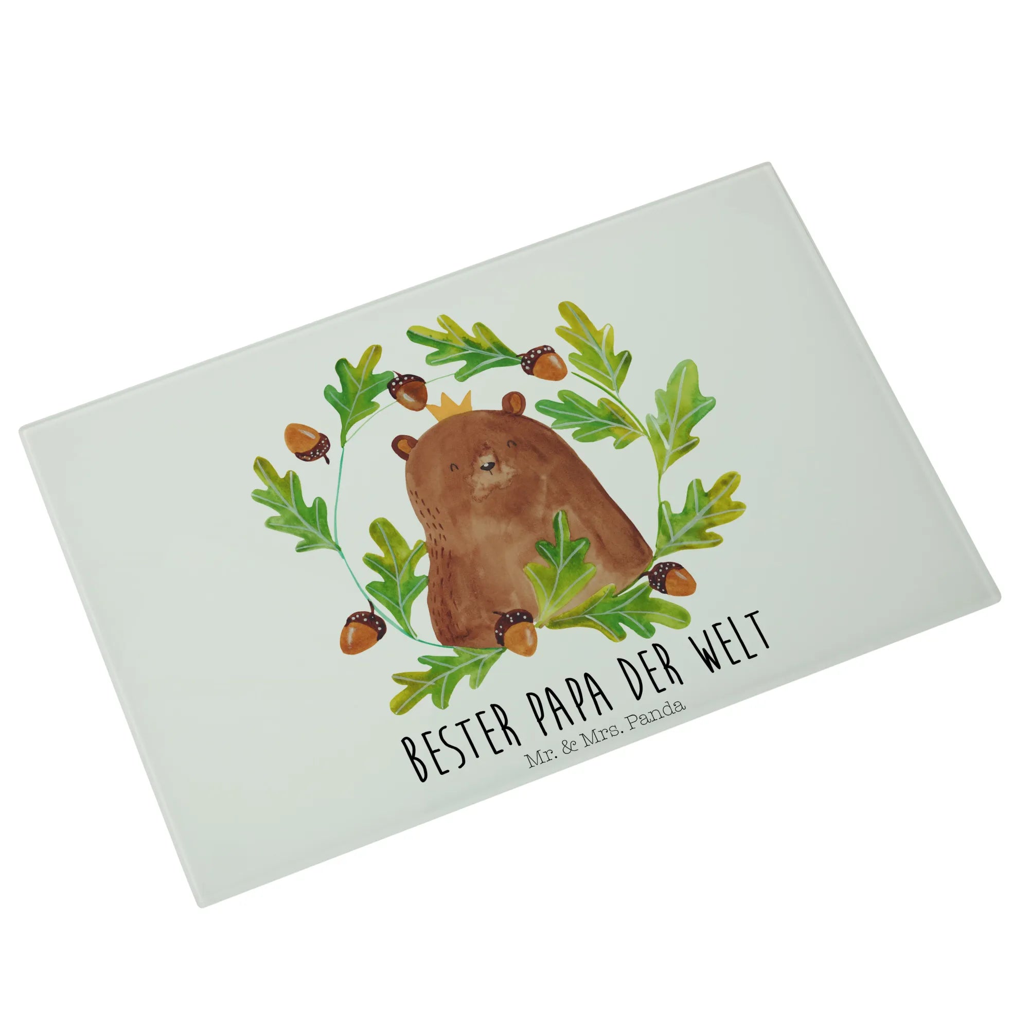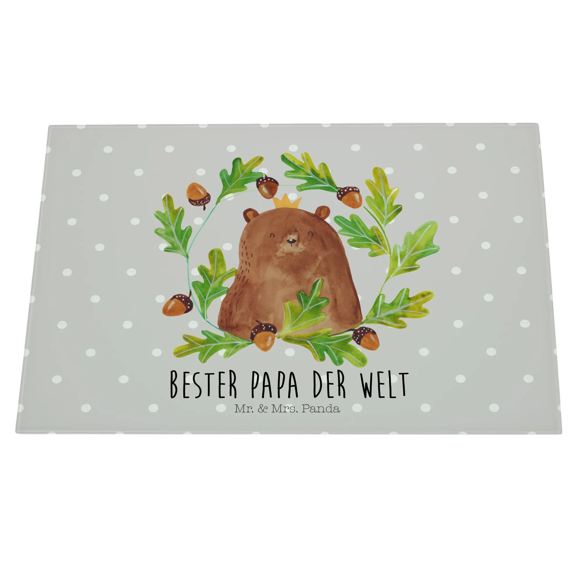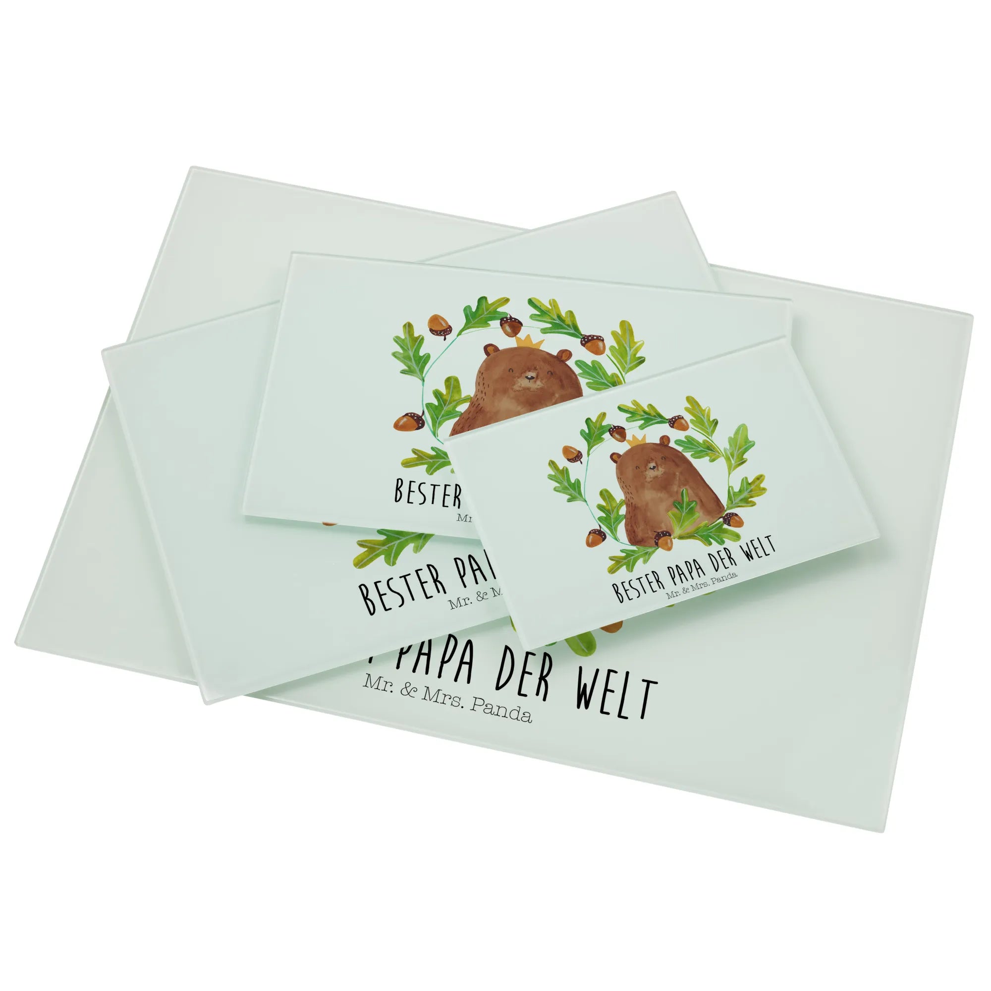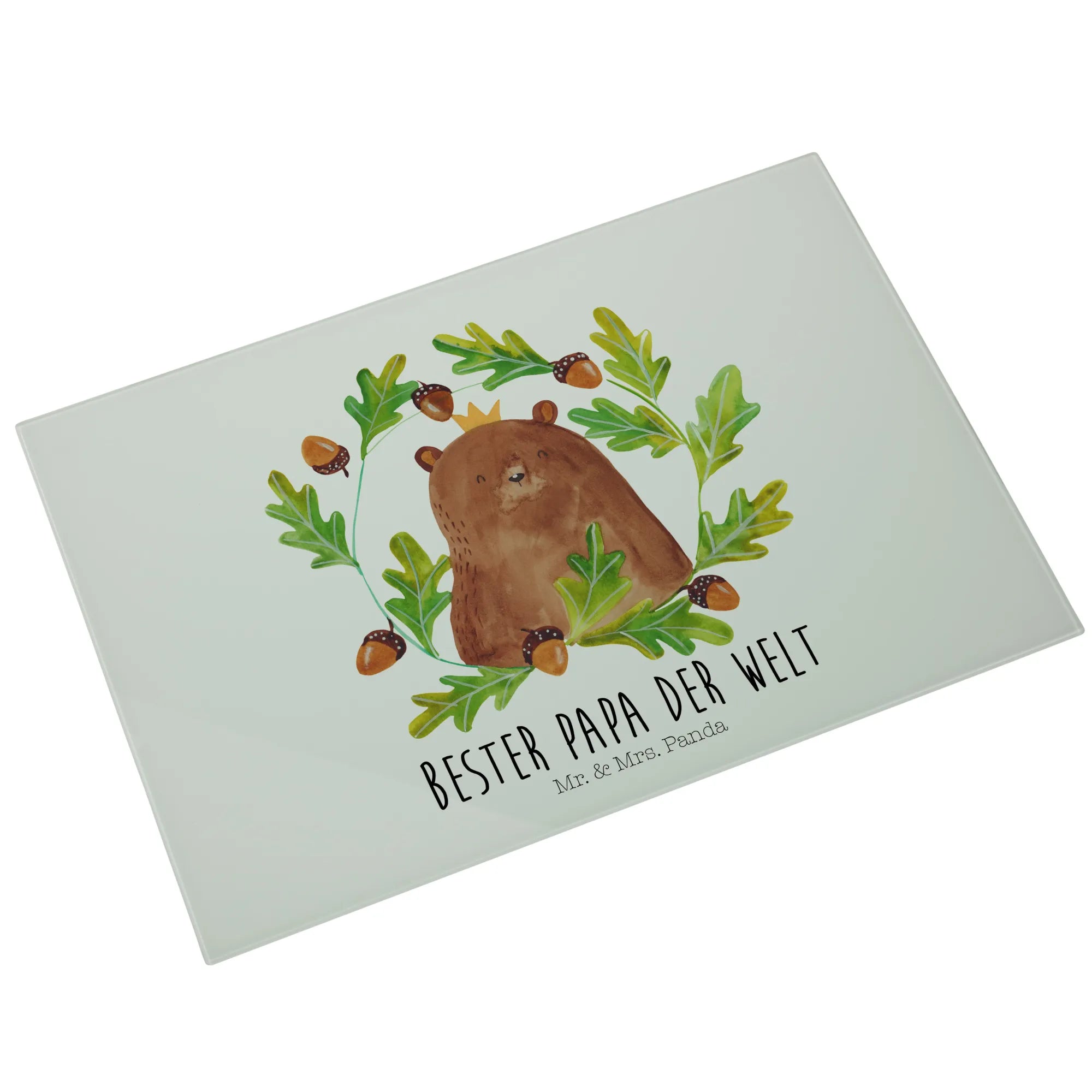 Das charmante Medium Glas Schneidbrett mit dem süßen Motiv "Bär König" von Mr. & Mrs. Panda ist die perfekte Geschenkidee für jeden Anlass, besonders zum Vatertag oder als Überraschung für den weltbesten Papa!