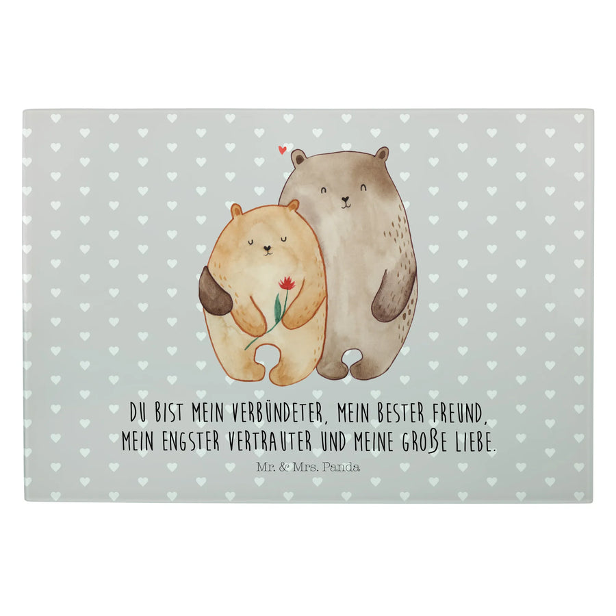 Du bist auf der Suche nach einem ganz besonderen Geschenk für deinen Lieblingsmenschen? Dann ist das XL Glas Schneidbrett mit dem herzlichen Motiv "Bären Liebe" von Mr. & Mrs. Panda genau das Richtige für dich!