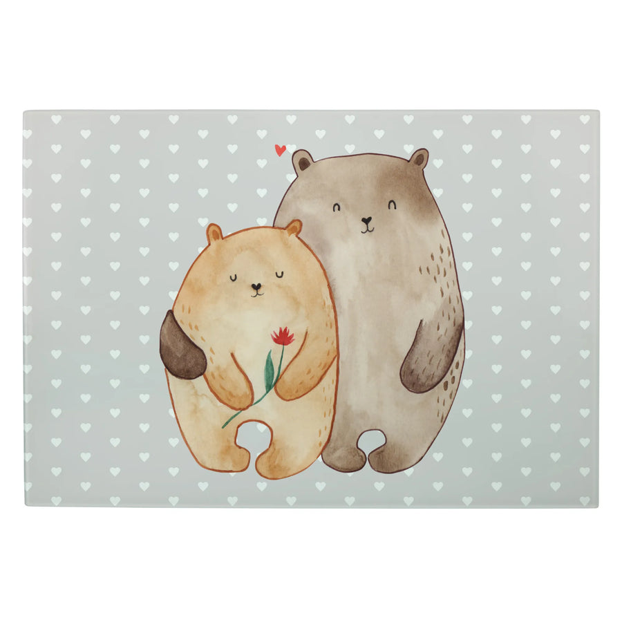 Glasschneidebrett Bären Liebe - XL Glas Schneidbrett - ohne Spruch - Grau Pastell